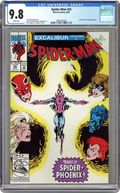 "Why Me?" Guest-starring Captain Britain. Script by Terry Kavanagh. Pencils by Chris Marrinan. Inks by Mark Stegbauer. Cover by Mark Bagley and Al Milgrom. The Spectacular Spider-Man answers a distress call from across the pond...from his old friend Captain Britain. A few years ago the web-slinger and Brian Braddock fought alongside one another (in Marvel Team-Up #65 and #66), so the wall-crawler does not hesitate to travel to London. But upon his arrival, he encounters a flying gargoyle, then the Juggernaut, and finally Excalibur! And somehow the web-spinner winds up in Paris! How did that happen? Is it possible that the villain from MTU #65 and #66 also remembers Spider-Man and Captain Britain teaming up? Yes, he does...and it's time for revenge! Cameo appearances by J. Jonah Jameson, Joe Robertson, Meggan, and Arcade. (Note: The cover is an homage to the classic cover of Uncanny X-Men 125.) 32 pages. Cover price $1.75. Grade: CGC 9.8 explanation of grade Condition: Used (collectible)