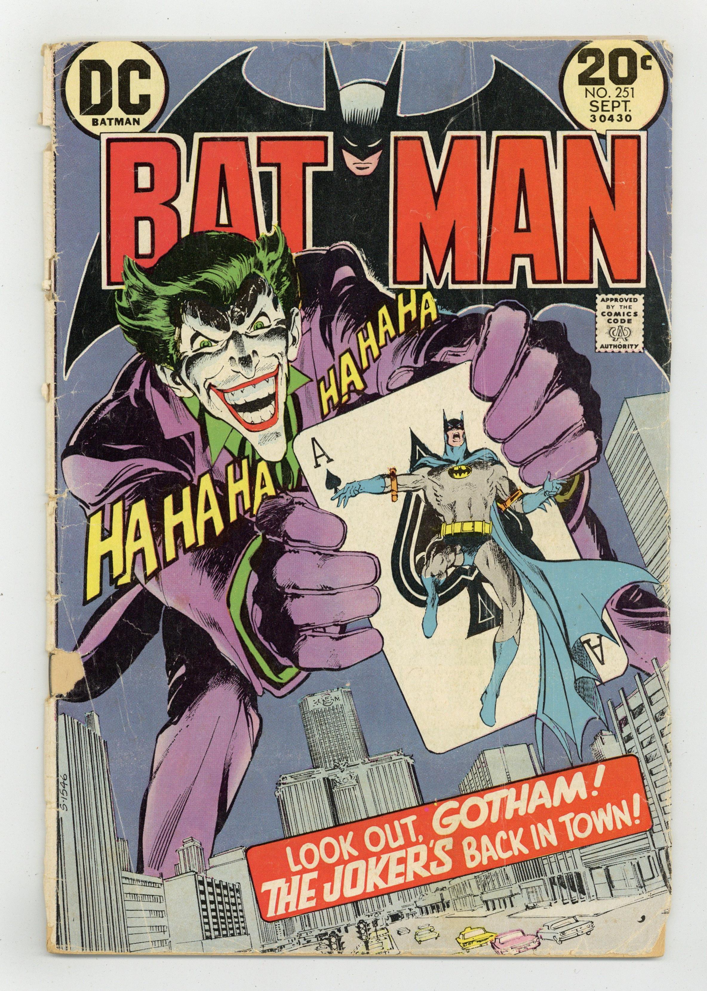 Cover art by Neal Adams. "The Joker's Five-Way Revenge!", script by Denny O'Neil, art by Neal Adams; The Joker has set himself free from the Mental Hospital for the Criminally Insane Batman had him incarcerated in, and he is out for blood; Before he was sent away, knowing that one member of his previous gang had ratted him out to the police, he had vowed to murder all five of them; And only the Batman is capable of stopping him; Despite Batman's best efforts, the Joker is able to finish off nearly all of his hit list; Batman is only alerted after the first murder, when a grinning corpse is found in the mud just outside of Gotham City, and he goes to each of the former members of the Joker's gang individually to try to protect them. Plop! comic book ad. Champion Sports comic book ad. 36 Pages, Full Color. Cover price $0.20. Grade: FR/GD 1.5 explanation of grade Condition: Used (collectible)