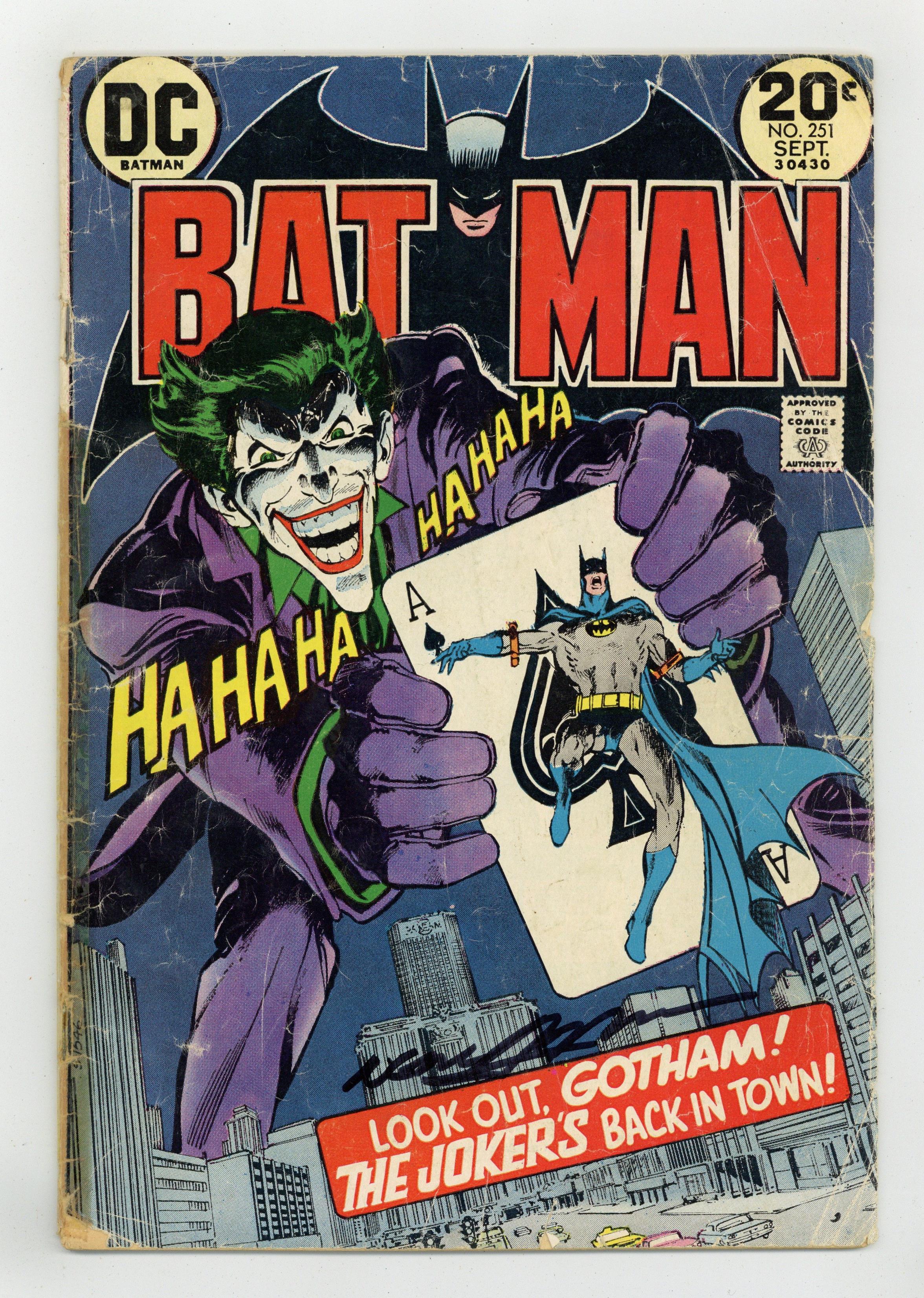Cover art by Neal Adams. "The Joker's Five-Way Revenge!", script by Denny O'Neil, art by Neal Adams; The Joker has set himself free from the Mental Hospital for the Criminally Insane Batman had him incarcerated in, and he is out for blood; Before he was sent away, knowing that one member of his previous gang had ratted him out to the police, he had vowed to murder all five of them; And only the Batman is capable of stopping him; Despite Batman's best efforts, the Joker is able to finish off nearly all of his hit list; Batman is only alerted after the first murder, when a grinning corpse is found in the mud just outside of Gotham City, and he goes to each of the former members of the Joker's gang individually to try to protect them. Plop! comic book ad. Champion Sports comic book ad. 36 Pages, Full Color. Cover price $0.20. Grade: FR 1.0 explanation of grade Condition: Used (collectible)