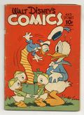 Cover by Dan Noonan. Stories and art by Floyd Gottfredson, Ted Thwaites, Merrill De Maris, Bob Karp, Hubie Karp, Earl Duvall, Dick Moores, Carl Buettner, Manuel Gonzales, Bob Wright, Bob Grant, and Al Taliaferro. Sometimes listed as Vol. 3 #3. The long-running vehicle for Disney character comics. In a classic Floyd Gottfredson story from the Mickey Mouse comic strip, Clarabelle Cow falls for her kidnapper, Peg Leg Pete. José Carioca crashes a Carnival ball to meet a beautiful dancer, in his first solo story in Walt Disney Comics and Stories. Goofy falls in love. What a Life!; It's The Real Thing; Keep 'Em Rolling; On the Beam; Lucky Goofy!; Goofy Gets Geared; Springtime for Pluto; The Carnival King; Cash and Carry; Black-Out Special; Mickey Mouse at the Bar None Ranch; Hollywood Chatter; Tarred and Feathered; On the Spot; Too Many Cooks; Forewarned; To Be Continued; The Cheerful Borrower; Mickey Mouse Movies; That's What; Donald's All Wet; Free Demonstration; A Hard Pill to Swallow; One Way Traffic; Pork-Pork-Pork! 64 pages, Full Color. Cover price $0.10. Grade: GD- 1.8 explanation of grade Condition: Used (collectible)