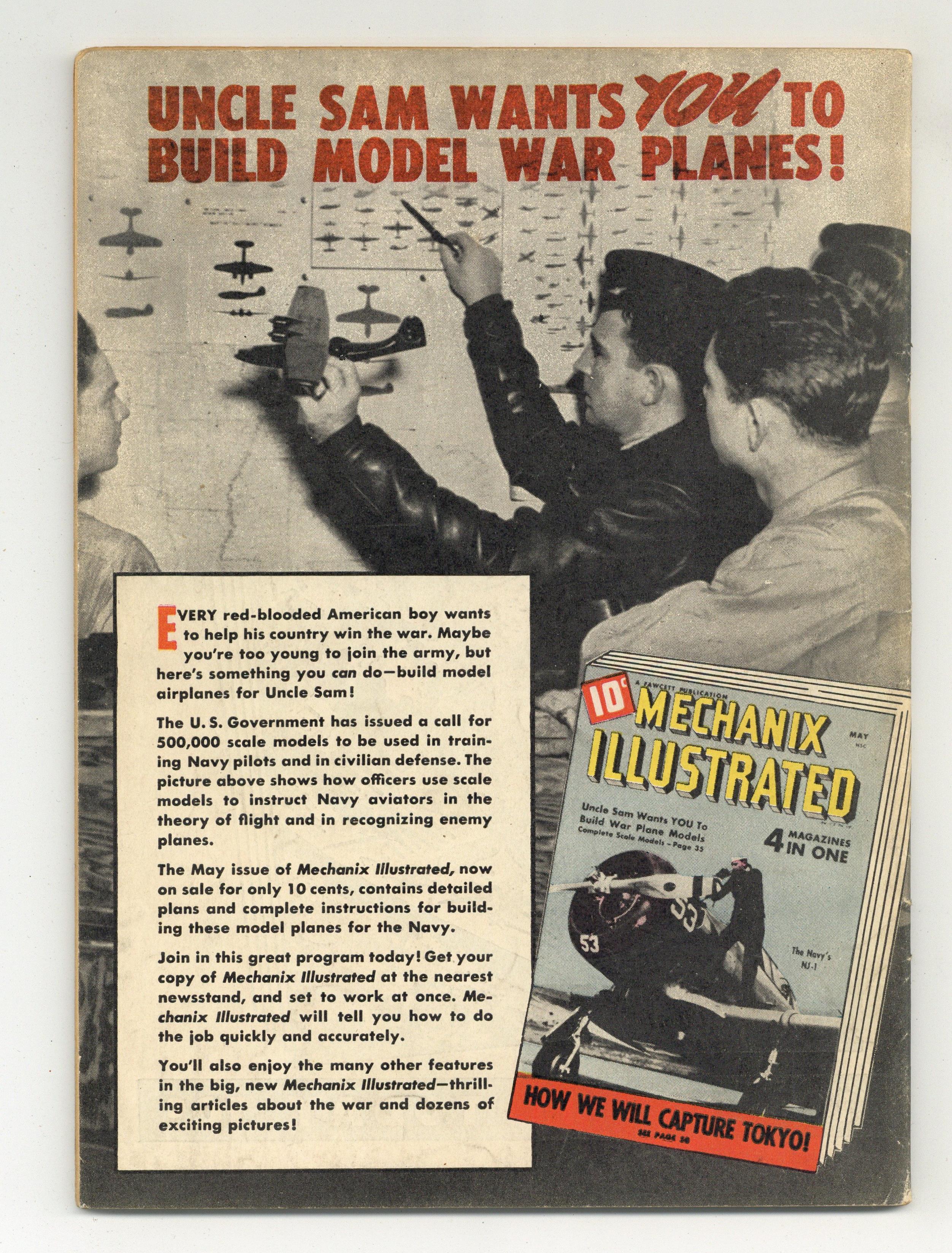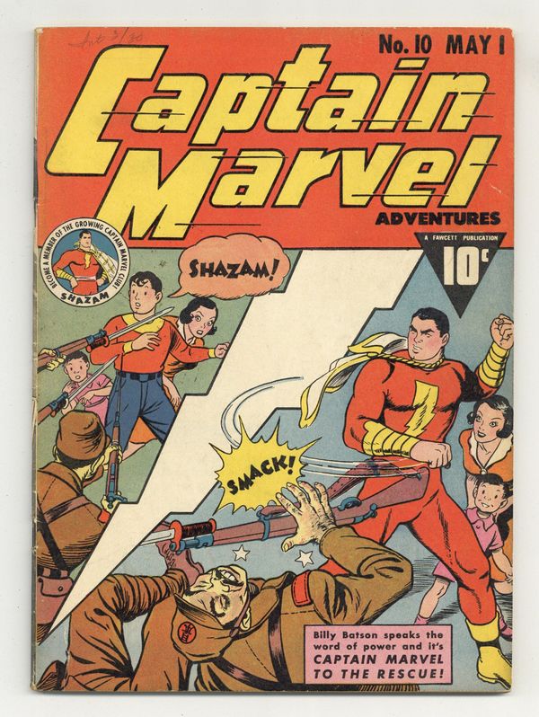 Cover by C.C. Beck. Stories by Otto Binder, Al Liederman and unknown. Art by C.C. Beck, Pete Costanza, Al Liederman and unknown. Shazam! Billy Batson speaks the word of power and it's Captain Marvel to the rescue! Captain Marvel stars in: "At the Circus" with story by Otto Binder and inks by C.C. Beck; "The Radio Racketeers"; "The Warrior of Wai"; and "The Strange Orders from Washington" with art by Pete Costanza. Also in this issue: Captain Kid in "The Swamp Smugglers" by Al Liederman; 2-page text story "Coffins Are for Corpses"; and Famous Blitzkriegs of the Past 1-pager "Xerxes"! 68 Pages, Full Color. Cover price $0.10. Grade: VG+ 4.5 explanation of grade Condition: Used (collectible)