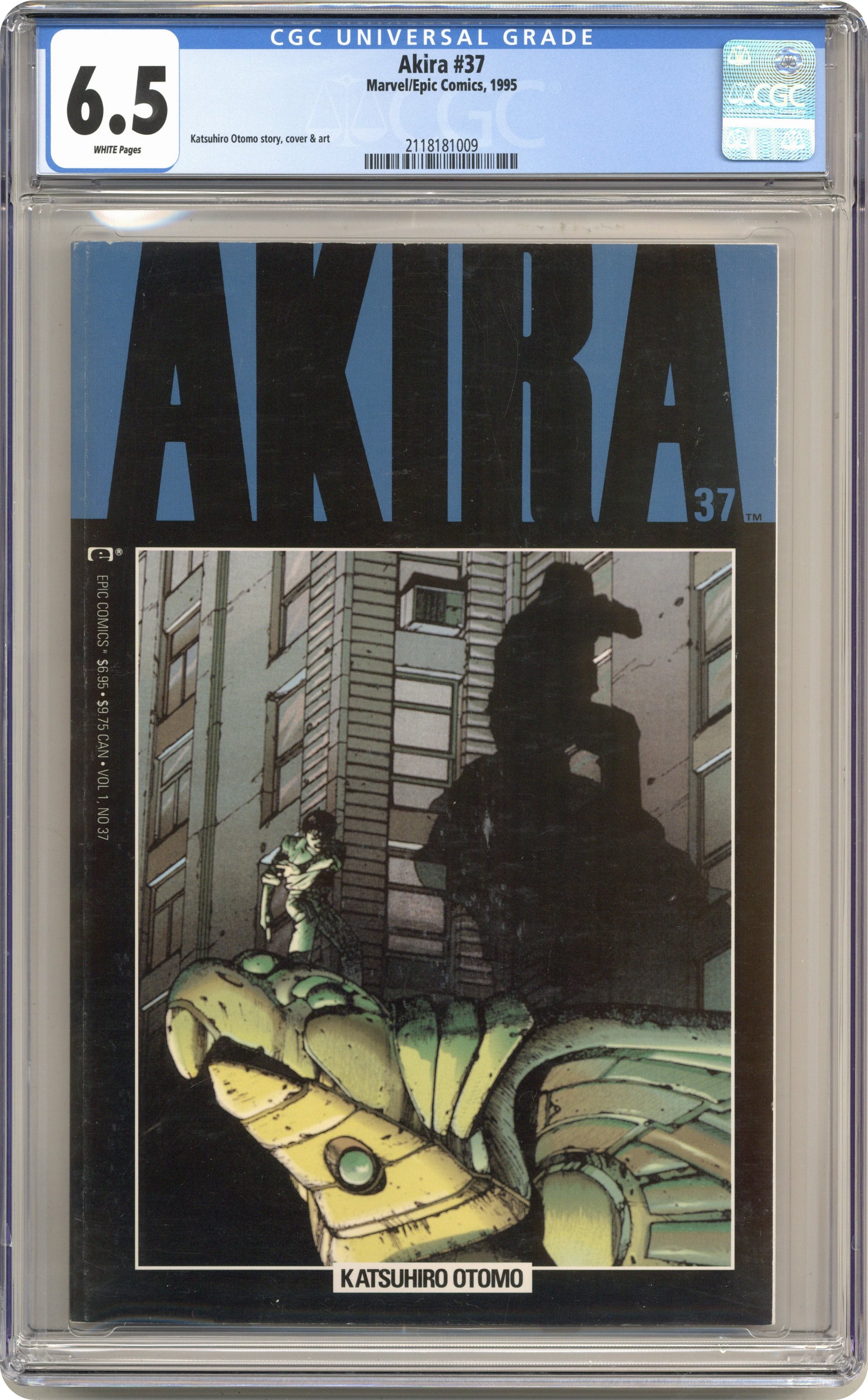"Evolution" As the epic battle draws to a close, the secret of Akiras power is revealed. The first English translation of Katsuhiro Otomos influential manga series. Story, art and cover by Otomo. Color by Steve Oliff. Includes a bonus story "Final Bets", written by Jo Duffy, with painted art by Mark Texeira, and a pinup by Dave Gibbons. Cover price $6.95. Grade: CGC 6.5 explanation of grade Condition: Used (collectible)