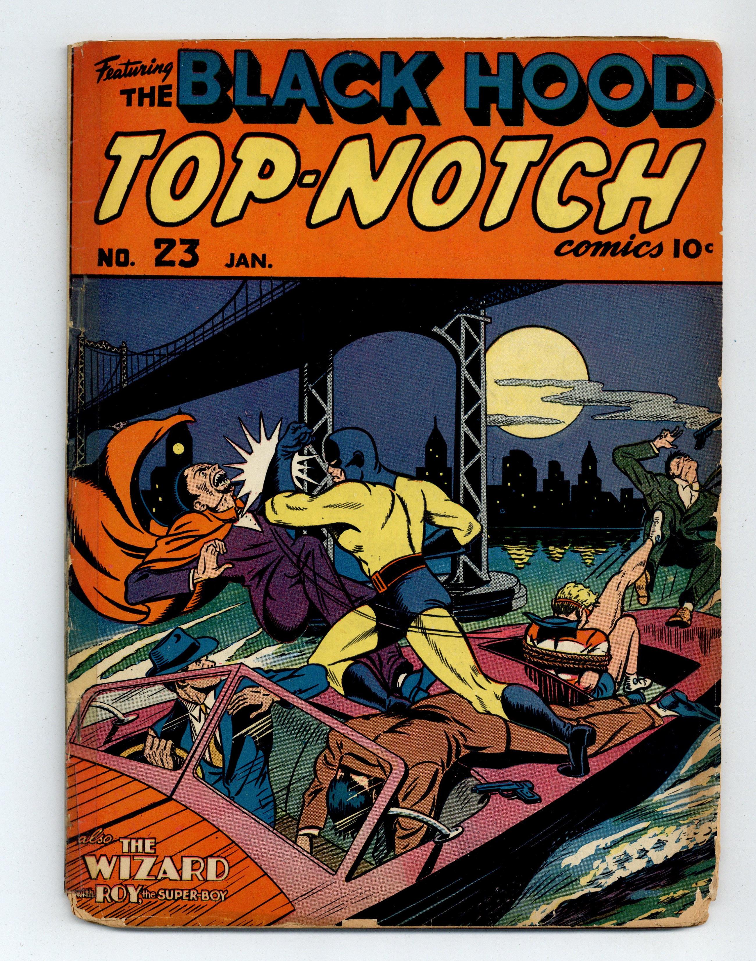 Cover by Al Camy. Edited by Harry Shorten. Stories by Harry Shorten, Al Camy, Harry Lucey, Harvey Biern, Warren King, Joe Blair, Ed Smalle, and Paul Reinman. Heroic tales of action and adventure—these are Top Notch Comics! 68 pages, full color. $0.10. Cover price $0.10. Grade: FR 1.0 explanation of grade Condition: Used (collectible)