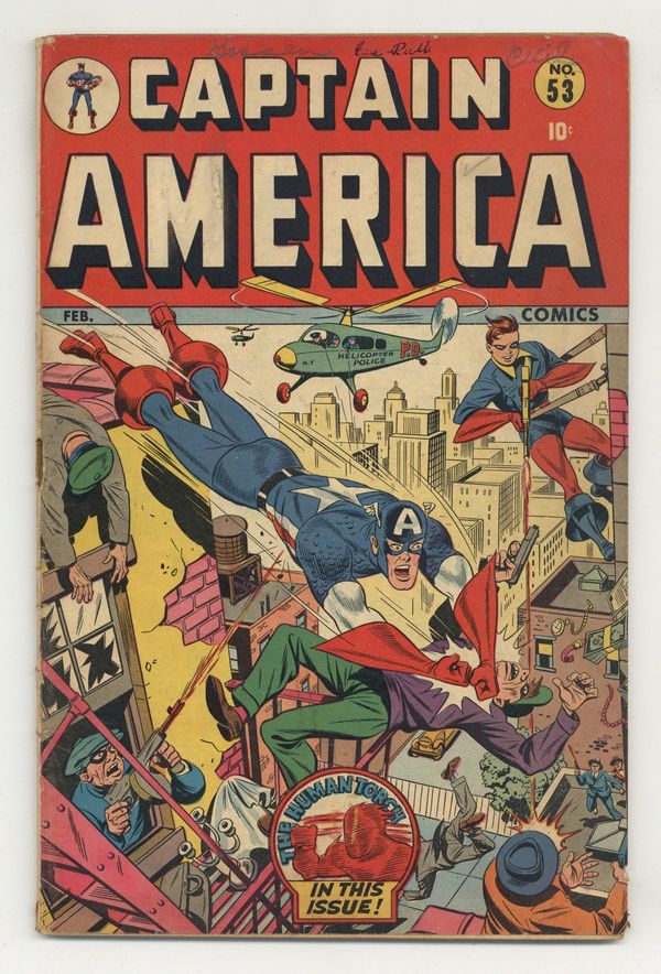 Includes: Alex Schomburg cover art; Robe of Evil, Pencils by Vince Alascia, Inks by Al Gabriele; Practice Makes Perfect, text story; The Killer Who Died Twice starring Human Torch, Pencils by Paul Reinman, Inks by Carmine Infantino; and Murder Etched In Stone, Pencils by Vince Alascia. 52 pages, full color. Cover price $0.10. Grade: GD/VG 3.0 explanation of grade Condition: Used (collectible)