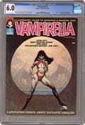 Published by James Warren, who gave fandom Famous Monsters, Eerie, Creepy, and other great magazines, Vampirella is a horror anthology series that featured stories and art by such genre giants as Richard Corben, Neal Adams, Archie Goodwin, Steve Englehart, Don Glut, Wally Wood, and many, many others. This first issue includes the following: "Vampirella's Welcome" by Bill Parente and Frank Frazetta; "Vampirella of Draculon" by Forrest J Ackerman (who had a hand in creating vampi vixen Vampirella) and Tom Sutton; "Death Boat" by Don Glut and Billy Graham; "Two Silver Bullets" by Don Glut and Mike Royer; "Spaced-Out Girls" by Don Glut, Bill Fraccio, and Tony Tallarico; and "Room Full of Changes" by Nicola Cuti and Ernie Colon. Cover art by Frank Frazetta. NOTE: A commemorative edition of this magazine was published in October 2001. It is very similar to the original, but can be easily identified by the $4.95 cover price (original 1969 edition was 50c cover priced), and an indica noting it as the commemorative edition. 68 pages, B&W. Cover price $0.50. Grade: CGC 6.0 explanation of grade Condition: Used (collectible)
