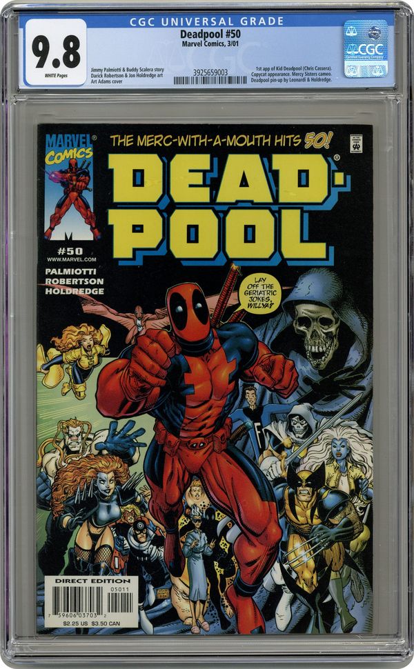 cover by art adams. jimmy palmiotti/darick robertson/jon holdredge. Deadpool takes on a sidekick! Could this be the first time a sidekick kills his mentor? Featuring machinegun-fast dialogue by Jimmy Palmiotti, awesome interior art by Transmetropolitan's Darick Robertson and a kickin' cover by Art Adams! FC Cover price $2.25. Grade: CGC 9.8 explanation of grade Condition: Used (collectible)