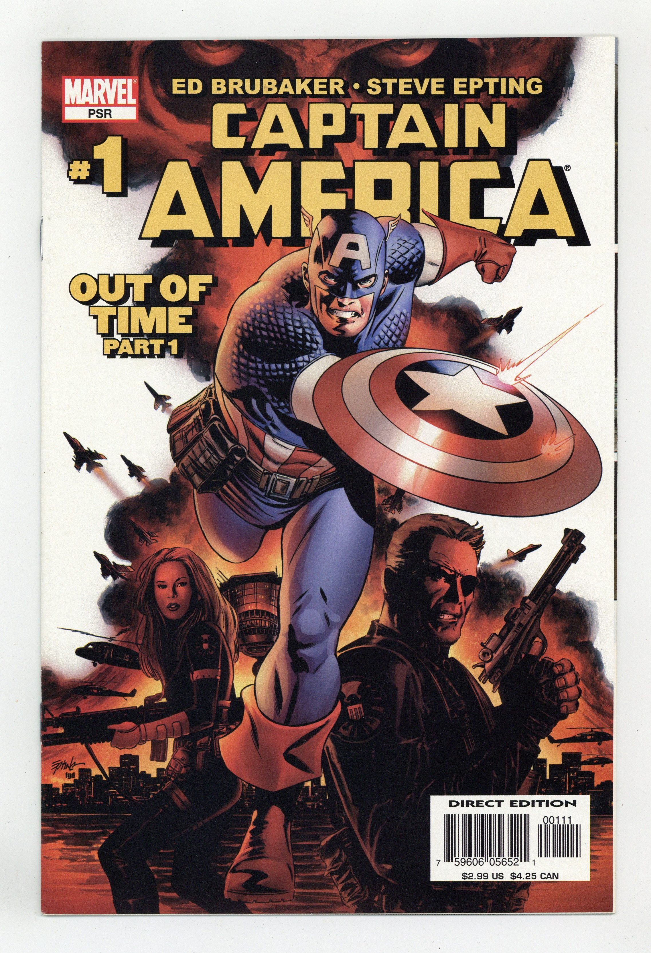 Ended Dec 5 2023 Winning Bid $18 1st cameo app. of Winter Soldier. Winter Soldier: Part 1.1 - Out of Time: Part 1 of 6 - Written by ED BRUBAKER Art & Cover by STEVE EPTING It's a new beginning as four-time Eisner-nominated Best Writer Ed Brubaker makes his Marvel debut, joined by white-hot artist Steve Epting! As the new regular creative team, they will take Cap's life in directions fans will never see coming! In just this first issue, the Red Skull lays the groundwork for his most devastating attack ever on Captain America and the land he holds dear...and with the Cosmic Cube in his possession, how can Cap hope to stop him? Find out in the shocking twist-ending that will have everybody in the industry talking! 32 PGS./ MARVEL PSR NOTE: First partial/Cameo appearance of Winter Soldier. First full appearance is in issue #6 Cover price $2.99. Grade: FN/VF 7.0 explanation of grade Condition: Used (collectible)