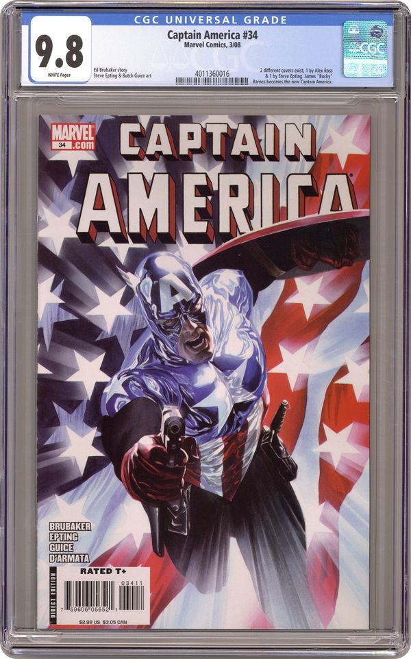 Ended Jan 21 2024 Winning Bid $65 Cover by Alex Ross. The Death of Captain America Act 2: Part 4 of 6 - Written by ED BRUBAKER Pencils by STEVE EPTING. Is this the NEW Captain America?! Cover price $2.99. Grade: CGC 9.8 explanation of grade Condition: Used (collectible)