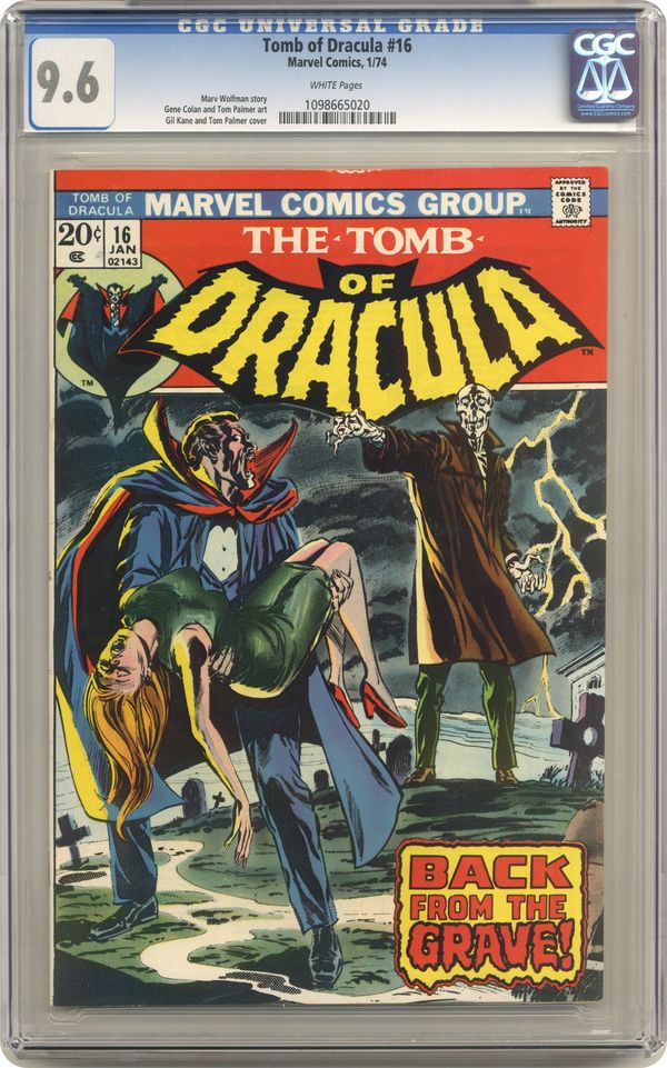 "Return From the Grave!" Written by Marv Wolfman. Art by Gene Colan and Tom Palmer. The Lord of Vampires will soon learn that he is not the only creature of the night to return from the grave... Plus, who is Doctor Sun ans why will he go on to become one of Dracula's greatest adversaries? 32 pages, FC. NOTE: 1st appearance of Doctor Sun. Cover price $0.20. Grade: CGC 9.6 explanation of grade Condition: Used (collectible)