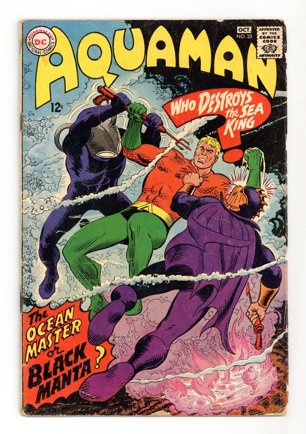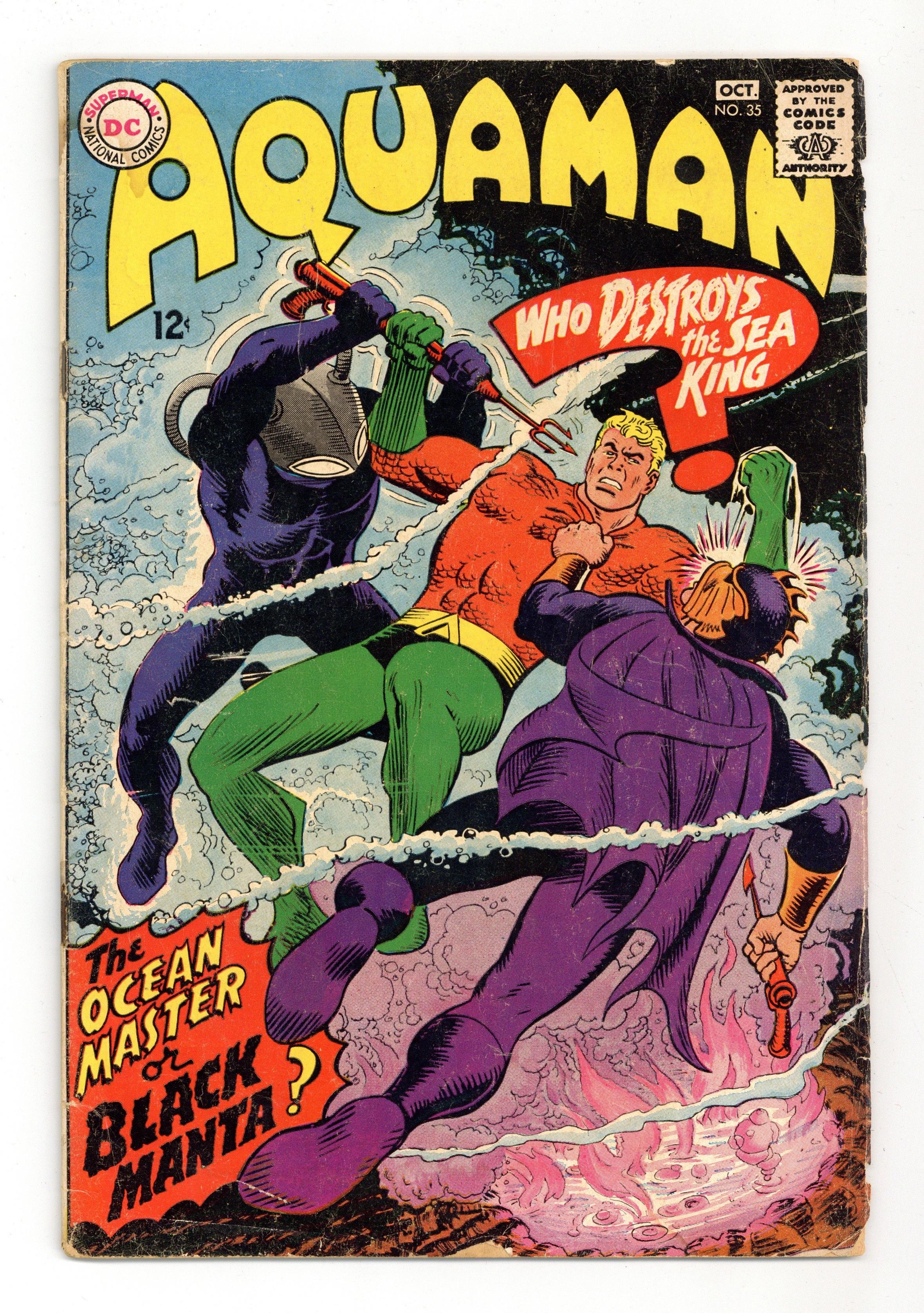 Cover art by Nick Cardy. Between Two Dooms!, script by Bob Haney, art by Nick Cardy; Black Manta attacks Atlantis. When he captures Aquaman, Ocean Master decides that nobody but him should defeat Aquaman and he attacks Black Manta, with Aquababy caught in the middle of the fight. Cap's Hobby Hints activity half-page by Henry Boltinoff. 36 pgs. $0.12. Cover price $0.12. Grade: FR/GD 1.5 explanation of grade Condition: Used (collectible)