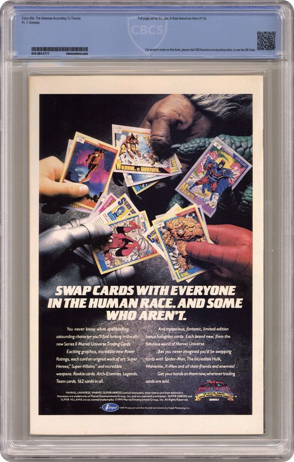 Ended Jul 3 2024 Winning Bid $33 Infinity Gauntlet Crossover. "Genesis!" Part 1. Guest-starring Adam Warlock and the Heroes of Earth. Story by Ron Marz. Art by Ron Lim and Tom Christopher. Story continued from Infinity Gauntlet #3. The worse has come to past. Even with a force including Thor, Hulk, Doctor Strange, and Captain America, the heroes of Earth were no match for Thanos and the power of the Infinity Gauntlet. The Silver Surfer arrives in time to watch Adam Warlock perish and to become a slave as Thanos becomes the ultimate ruler of the universe. 32 pages. Cover price $1.00. Grade: CBCS 9.8 explanation of grade Condition: Used (collectible)