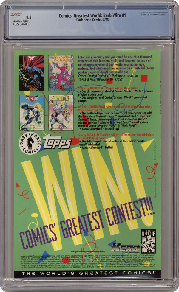 Published Aug 1993 by Dark Horse.Comics Greatest World Barb Wire (1993) 1A CGC 9.8 Dorman