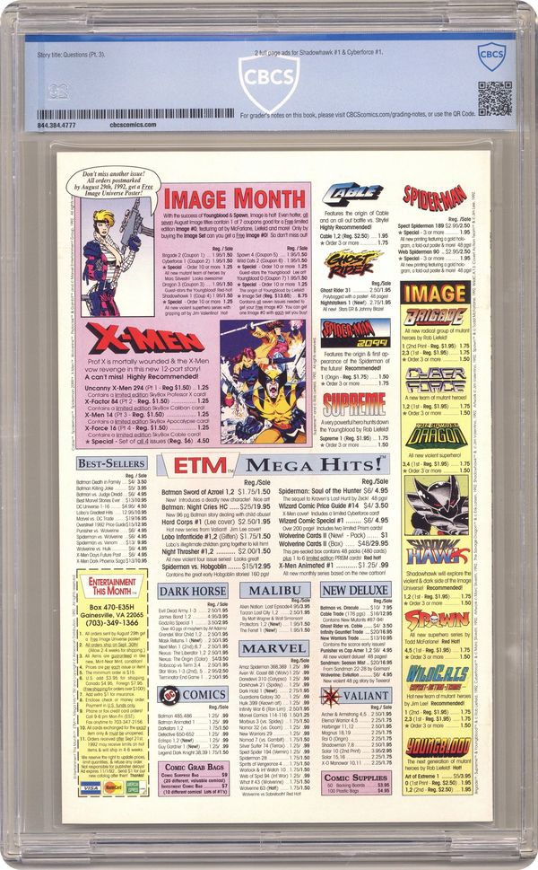 Ended Jul 5 2024 Winning Bid $31 Direct Edition (has no bar code on cover) - "Questions!" Part 3 of 4. Created, story, and art by Todd McFarlane. Spawn finally confronts his wife, five years after his death. Plus, can this newly born Spawn survive a battle with a true denizen from the Underworld? It's Spawn vs. the Violator in a battle neither of them may walk away from completely intact. Cover price $1.95. Grade: CBCS 9.8 explanation of grade Condition: Used (collectible)