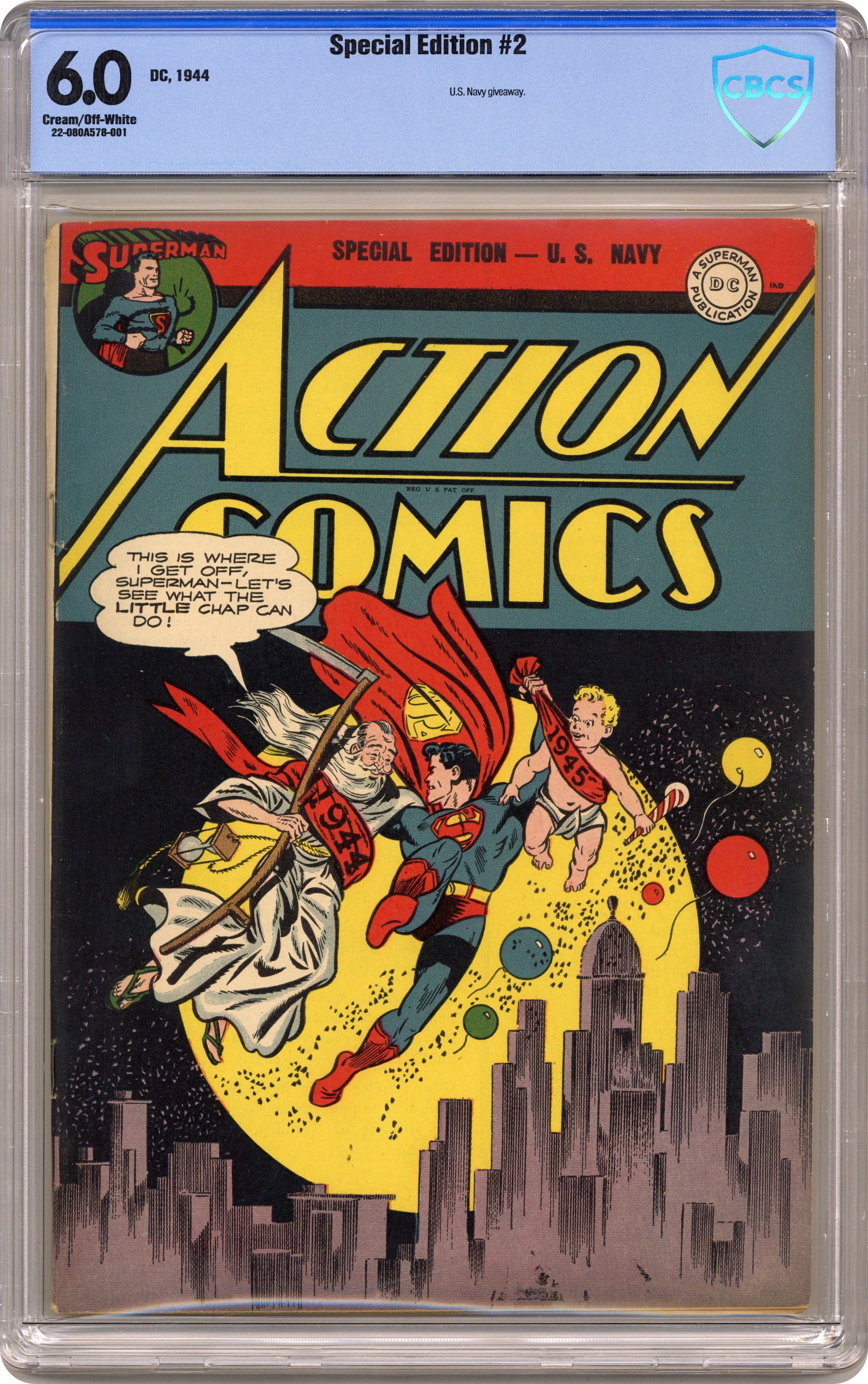Special Edition of Action Comics (1938 DC) #81 which was prepared in cooperation with the U.S. Navy. These editions were printed with simplified wording and used as supplemental reading and workbook materials for the Special Navy Training Units. 52 pages, full color. Grade: CBCS 6.0 explanation of grade Condition: Used (collectible)