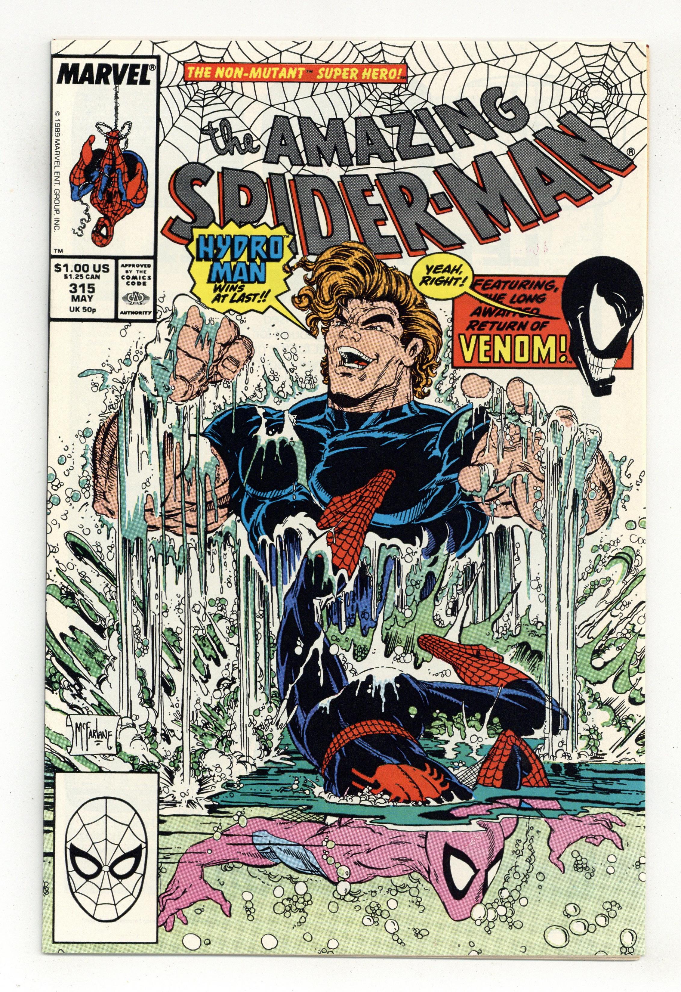 Direct Edition. "A Matter of Life and Debt!" Script by David Michelinie. Art by Todd McFarlane. Cover by Todd McFarlane. Life is full of challenges and on this day Peter Parker and his web-spinning alter-ego face three! The first, Hydro-Man attempts a payday robbery! But the Spectacular Spider-Man stops the heist! The second, Nathan Lubensky steals money from Aunt May to pay his gambling debts! However, Peter quickly shuts down his operation! And the fateful third...Venom escapes from the Vault! Wow, this challenge will be more difficult and more deadly starting next issue! Cameo appearances by Mary Jane Watson and Kristy Watson. (Notes: Venom previously appeared in Amazing Spider-Man 300.) The letters page contains a statement of ownership: average print run 451,930; average paid circulation 271,100. 36 pgs. Cover price $1.00. Grade: VF- 7.5 explanation of grade Condition: Used (collectible)