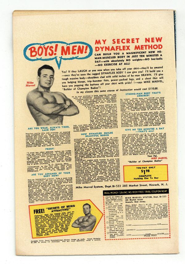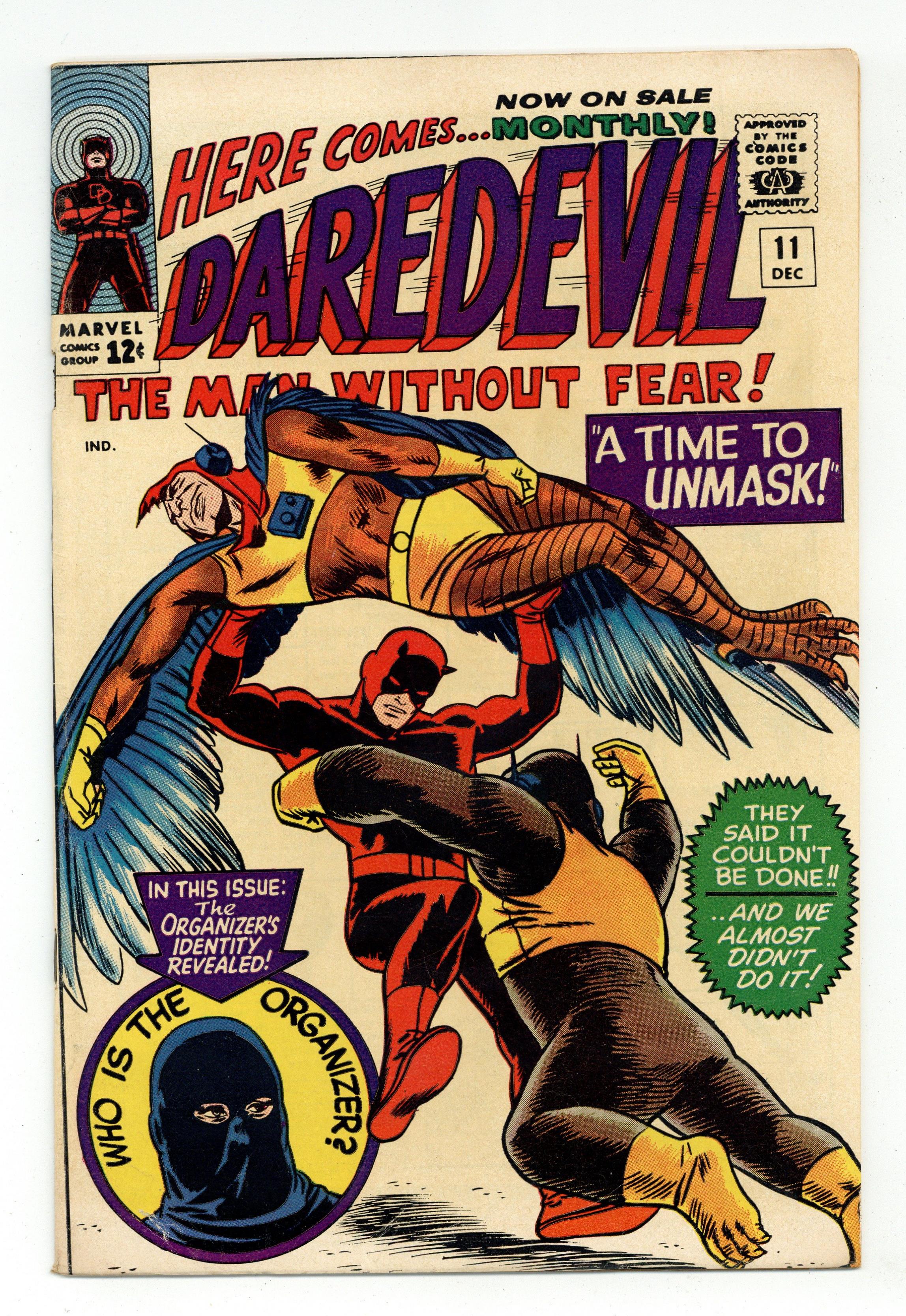 Cover pencils by Bob Powell, inks by Wally Wood. The Organizer returns with Ape Man, Bird Man, Cat Man, and Frog Man in A Time To Unmask!, script by Stan Lee, pencils by Bob Powell, inks by Wally Wood; The case of the Organizer and the Reform Party is wrapped up as mysteries are all solved; Matt takes a leave of absence from the law firm. 36 pgs. Cover price $0.12. Cover price $0.12. Grade: FN- 5.5 explanation of grade Condition: Used (collectible)