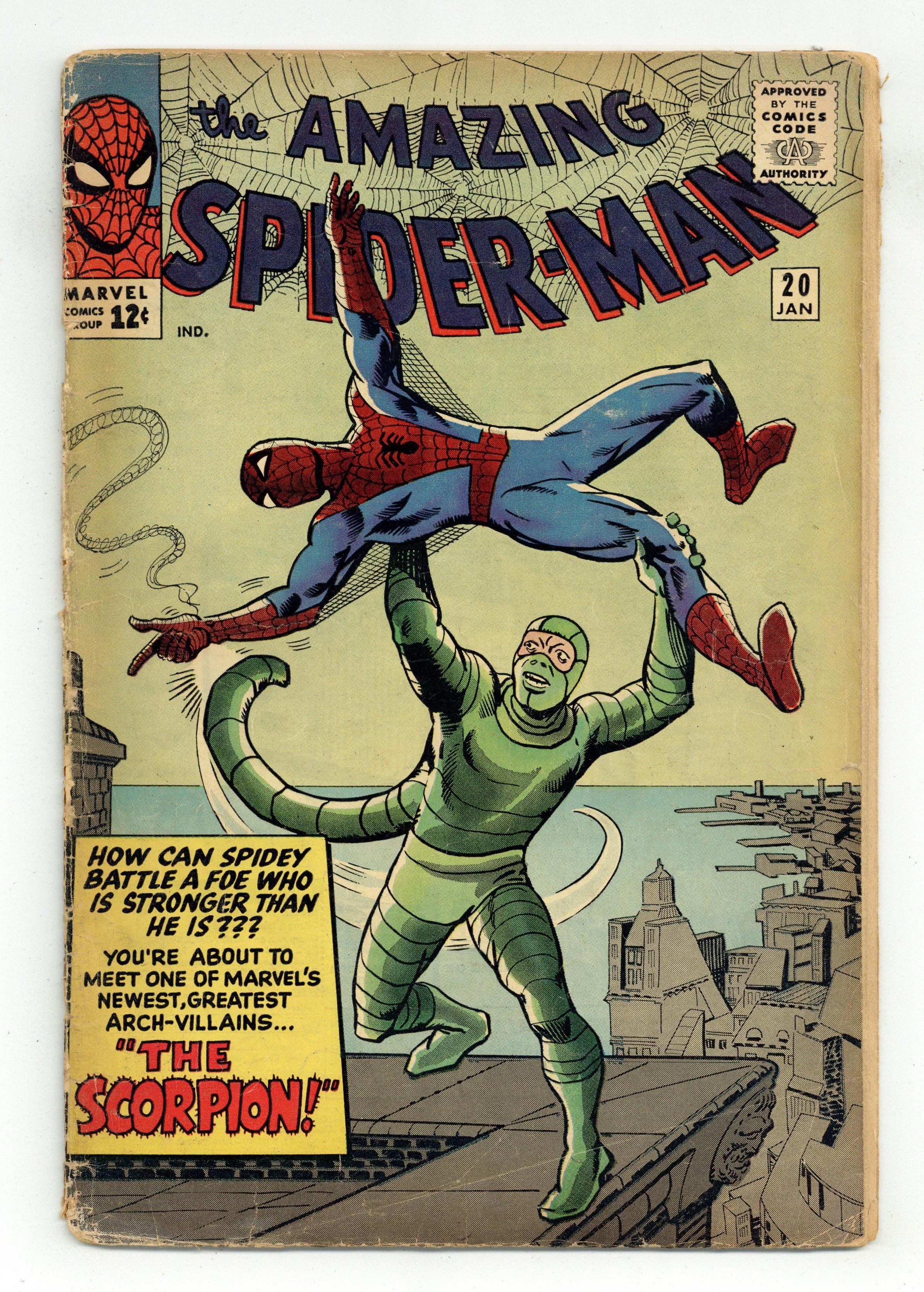 Cover art by Steve Ditko. First appearance of the Scorpion in The Coming of the Scorpion!, script by Stan Lee, art by Steve Ditko; J. Jonah Jameson pays Dr. Stillwell to turn Mac Gargan into the Scorpion to try to capture Spider-Man. Stillwell's formula makes Gargan become more evil than he originally was and the Scorpion goes on a rampage and is finally stopped by Spider-Man. Reprinted in Marvel Tales # 15 and 158. 36 pgs. $0.12. Cover price $0.12. Grade: PR 0.5 explanation of grade Condition: Used (collectible)