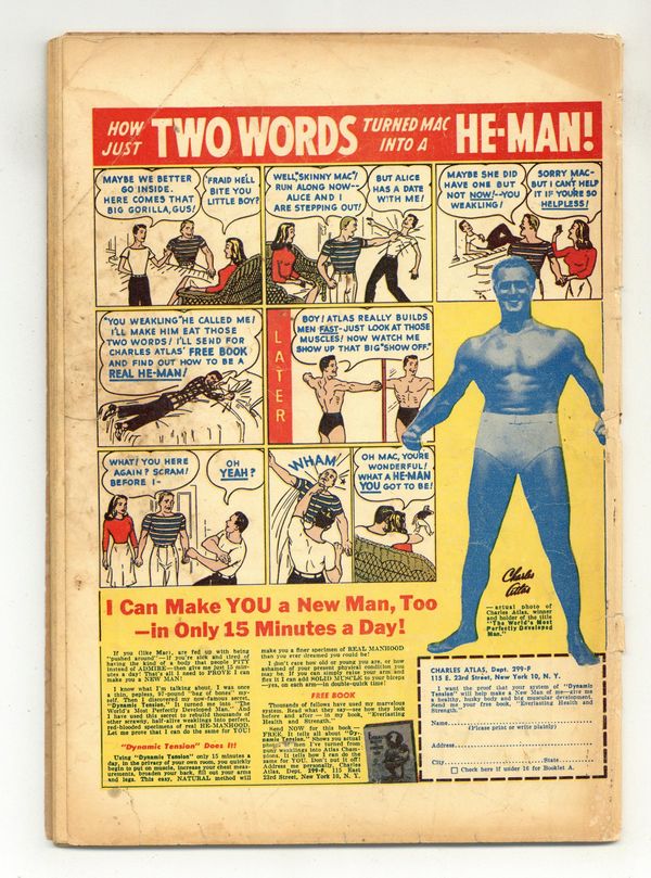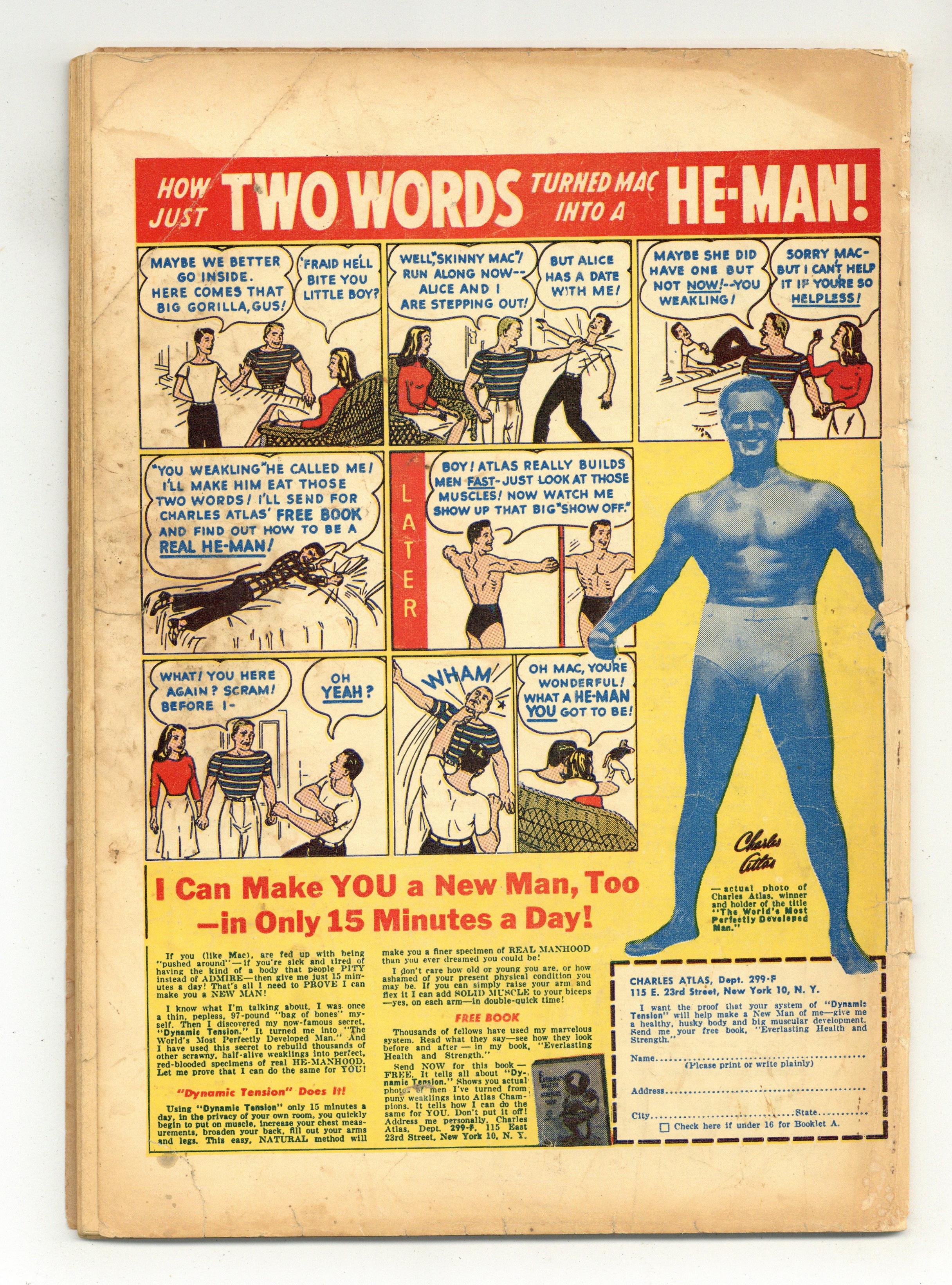 Cover by Al Fagaly. Stories by Bob Montana and unknown. Art by Bob Montana, Bill Vigoda, Al McLean and unknown. Jughead's birthday proves to be the most troublesome event of the year due to a reindeer sweater fiasco in "Jughead's Birthday"! (Note: first Bob Montana Archie story since his departure to fight in World War II in early 1943.) Plus: After seeing how Theodosius and Jughead benefit from being chivalrous, Archie decides to put Jughead's jacket over a mud puddle for Veronica in "The Gentleman"; after Fred and Archie refuse to wax the foyer floor, Mrs. Andrews does it herself in "Wax Work"; Betty and Veronica go to great lengths to get the autograph of Franchot Dreambean, the famous crooner who's staying at the Riverdale hotel; and when Archie's grandmother comes for a visit, Fred hires Archie and Jughead to repaint the guest room in "The Gruesome Twosome"! Also: Archie gives us some "Hollywood dirt straight from the MGM lion's mouth" about MGM's search for places to film, Gregory Peck's advertising campaign, Audrey Totter, Gary Cooper, William Powell, John Garfield, Dick Bare, Paul Henreid and Ann Sheridan in the 2-page "Hollywood Tattle Tale"! And: "Archie Puzzle Page" (three of them)! 52 pages, full color. Cover price $0.10. Grade: GD- 1.8 explanation of grade Condition: Used (collectible)