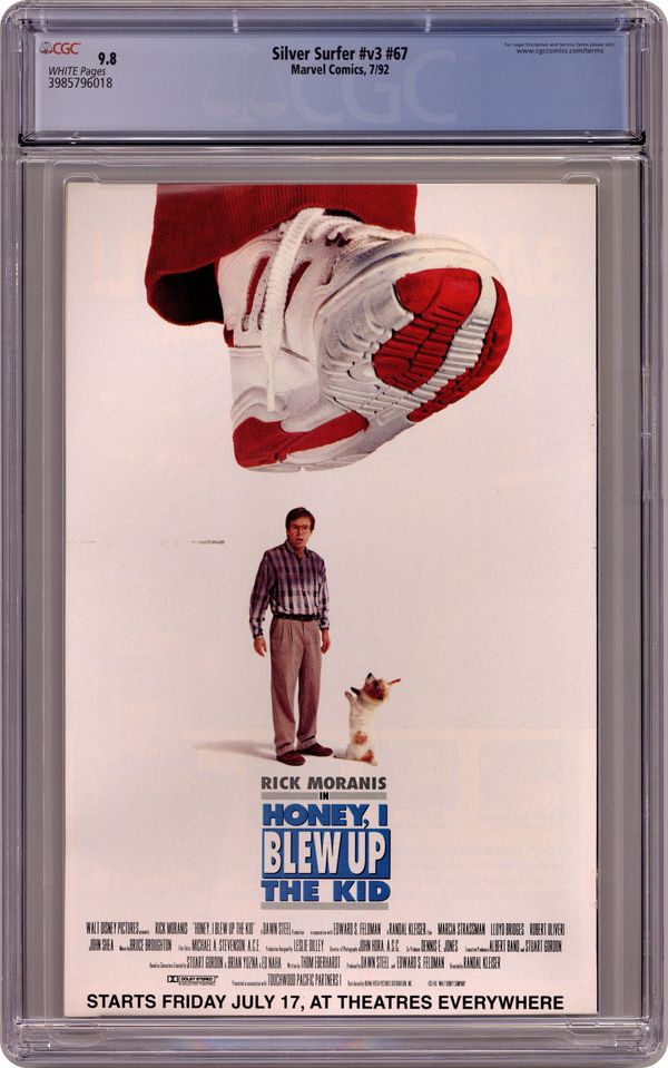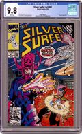 Infinity War Crossover. "Sins of the Father!" Guest-starring Galactus, Doctor Strange, Starfox, and Firelord. Story by Ron Marz. Art by Kevin West and Tom Christopher. Cover by Ron Lim. Story continued from Infinity War #1 and Doctor Strange #42. The Silver Surfer confronts his former master, Galactus. It seems the Devourer of Worlds requires the assistance of the Sorcerer Supreme and the Surfer intends to find out why, even if he must battle Nova (Frankie Ray) to do so. Story continues in Infinity War #2. 32 pages. Cover price $1.25. Grade: CGC 9.8 explanation of grade Condition: Used (collectible)