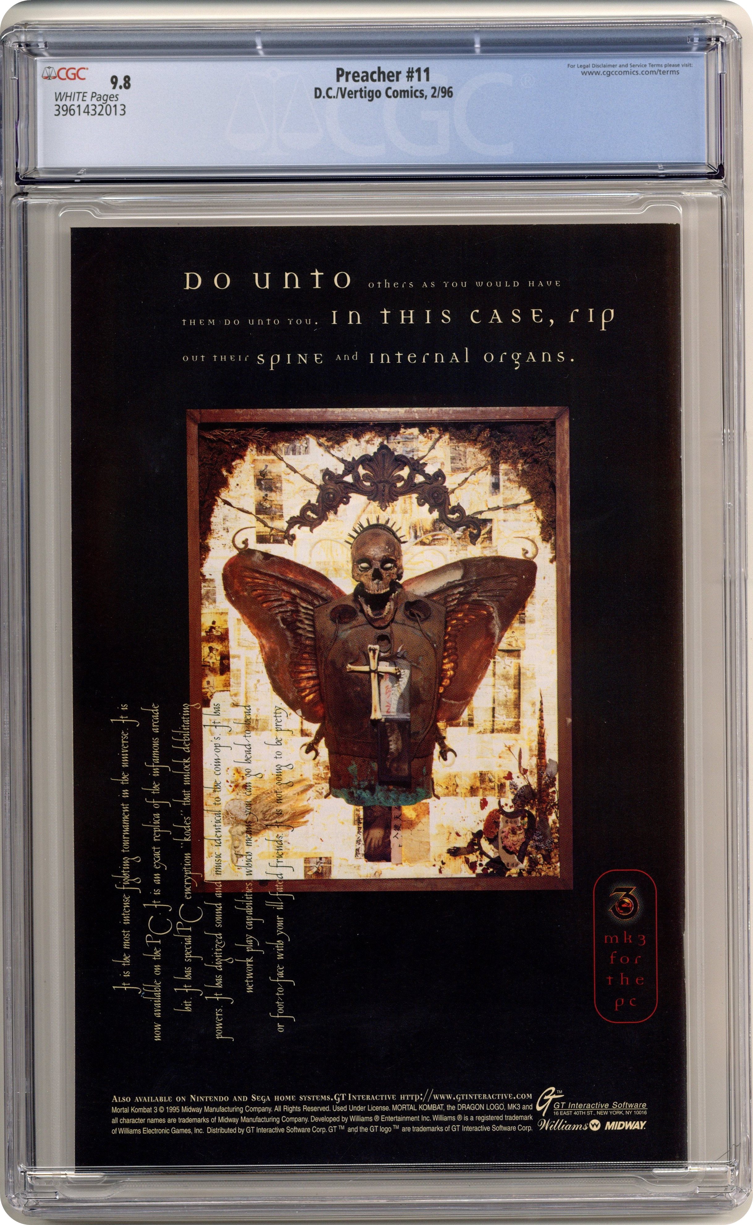 Painted cover by Glenn Fabry. Pardners, script by Garth Ennis, art by Steve Dillon; John Wayne appears before Jesse and tells him not to give up, God gives message to Tulip. 36 pgs. $2.50. Cover price $2.50. Grade: CGC 9.8 explanation of grade Condition: Used (collectible)