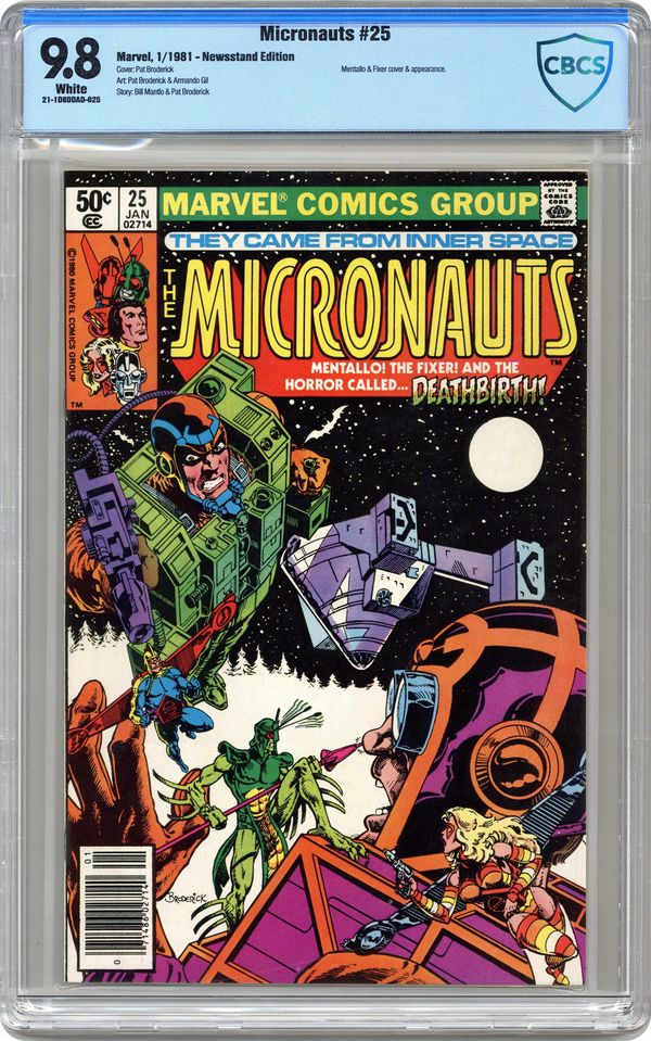 Ended Jun 20 2024 Winning Bid $18 Mentallo! The Fixer! And the horror called..."Deathbirth!" Written by Bill Mantlo and Pat Broderick, with art by Pat Broderick and Armando Gil. Plus: a "Tales of the Microverse" story, where Baron Karza's origin is revealed, by Bill Mantlo, Pat Broderick and Armando Gil. Cover by Pat Broderick. Cover price $0.50. Grade: CBCS 9.8 explanation of grade Condition: Used (collectible)