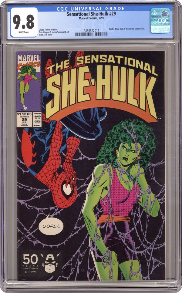 Cover art by Mike Zeck. The Fourth Wall..and Beyond starring Venom, Hulk, Wolverine, Spider-Man, and Dr. Sanderson, script by Louise Simonson, pencils by Tom Morgan, inks by James Sanders III; Physics professor Dr. Sanderson plays dimension tricks with the She-Hulk. 36 pgs. $1.50. Cover price $1.50. Grade: CGC 9.8 explanation of grade Condition: Used (collectible)