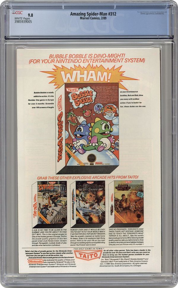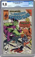 Direct Edition. "The Goblin War!" Inferno crossover. Script by David Michelinie. Art by Todd McFarlane. Cover by Todd McFarlane. Story continues from Web of Spider-Man 47. With his family in danger, the Green Goblin rides again! Oh my, does Harry know what he's doing by challenging the might of the Hobgoblin? In the skies above the Osborn Chemical Company, the pumpkin bombs fly as the goblins clash! And naturally your friendly neighborhood Spider-Man is caught in the middle! Meanwhile the effects of Inferno begin affecting Dr. Curt Connors. Uh-oh, could an appearance from the Lethal Lizard be in the near future? Yesss! Story continues in Spectacular Spider-Man 147. Cameo appearances by Mary Jane Watson, Liz Osborn, and J. Jonah Jameson. (Note: Harry Osborn dons the garb of the Green Goblin for the first time since Amazing Spider-Man 180.) 36 pgs. Cover price $1.00. Grade: CGC 9.8 explanation of grade Condition: Used (collectible)