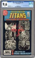 Direct Edition. The Judas Contract: Part 1 of 4: The Eyes of Tara Markov! - Written by Marv Wolfman & George Perez. Art by George Perez & Dick Giordano. Cover by George Perez. Terra gathers intelligence for Deathstroke! Starring Joseph Wilson (intro/cameo, later Jericho in #44), Starfire, Wonder Girl, Dick Grayson, Changeling, Terra, Cyborg, Raven, Deathstroke the Terminator, Terry Long, Sarah Simms, Wintergreen and Adeline Wilson. 32 pages, full color. Cover price $0.75. Grade: CGC 9.6 explanation of grade Condition: Used (collectible)