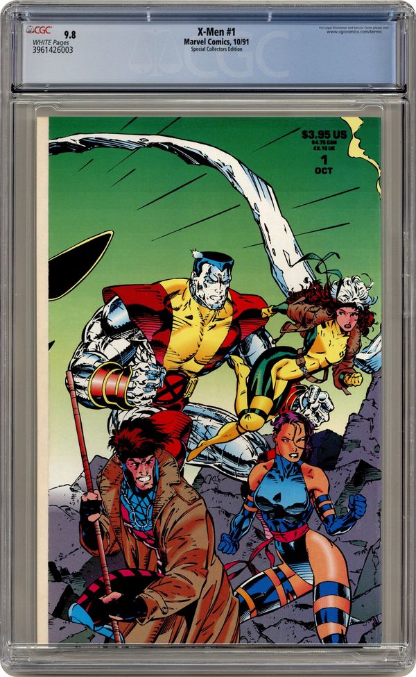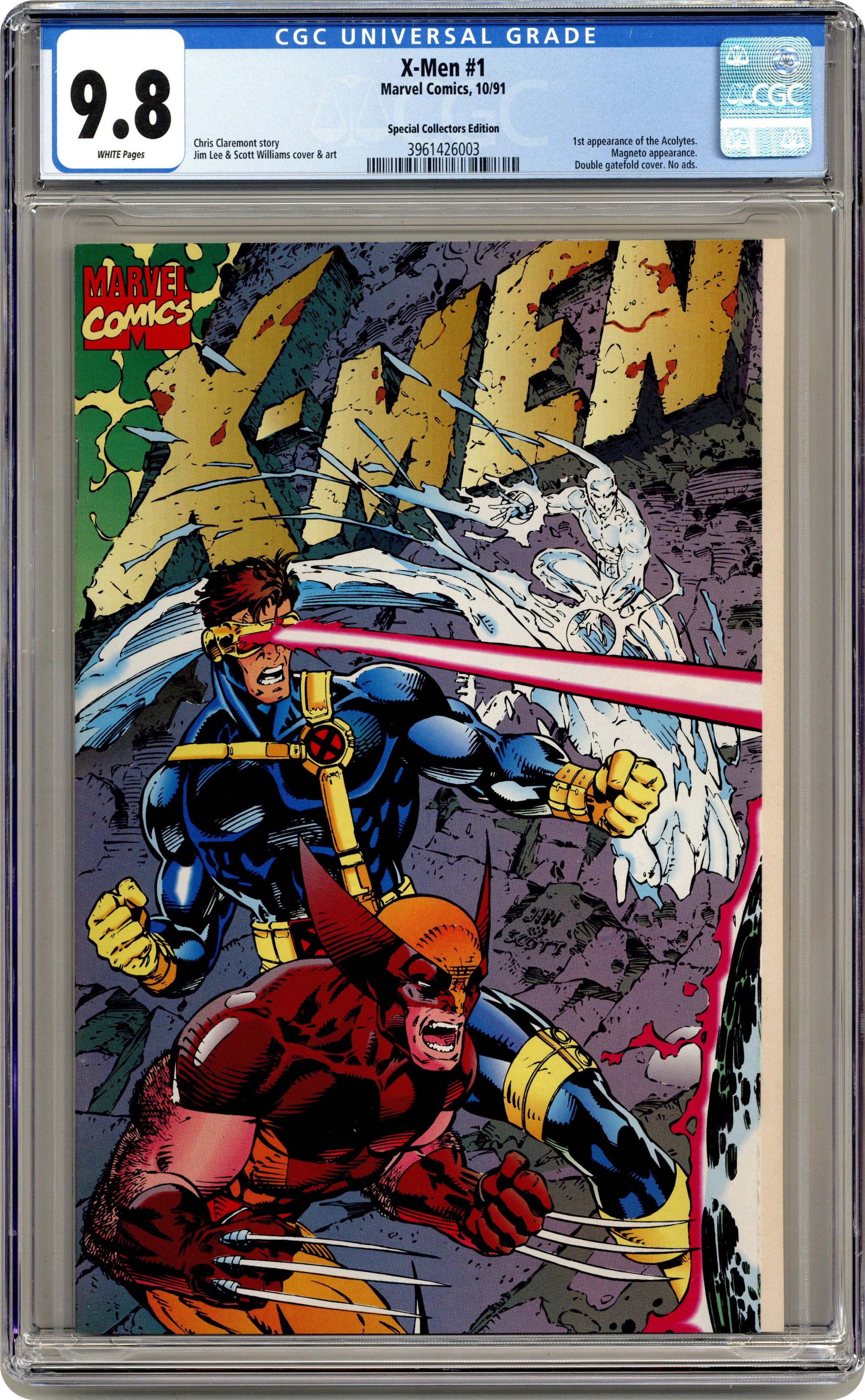 Fold-out cover. Magneto guest stars in "Rubicon." Script by Jim Lee (co-plot) and Chris Claremont, pencils by Jim Lee, inks by Scott Williams. Nick Fury cameo. 2-page pin-up: gallery of X-Men villains. Lee/Williams cover. Cover price $3.95. Grade: CGC 9.8 explanation of grade Condition: Used (collectible)