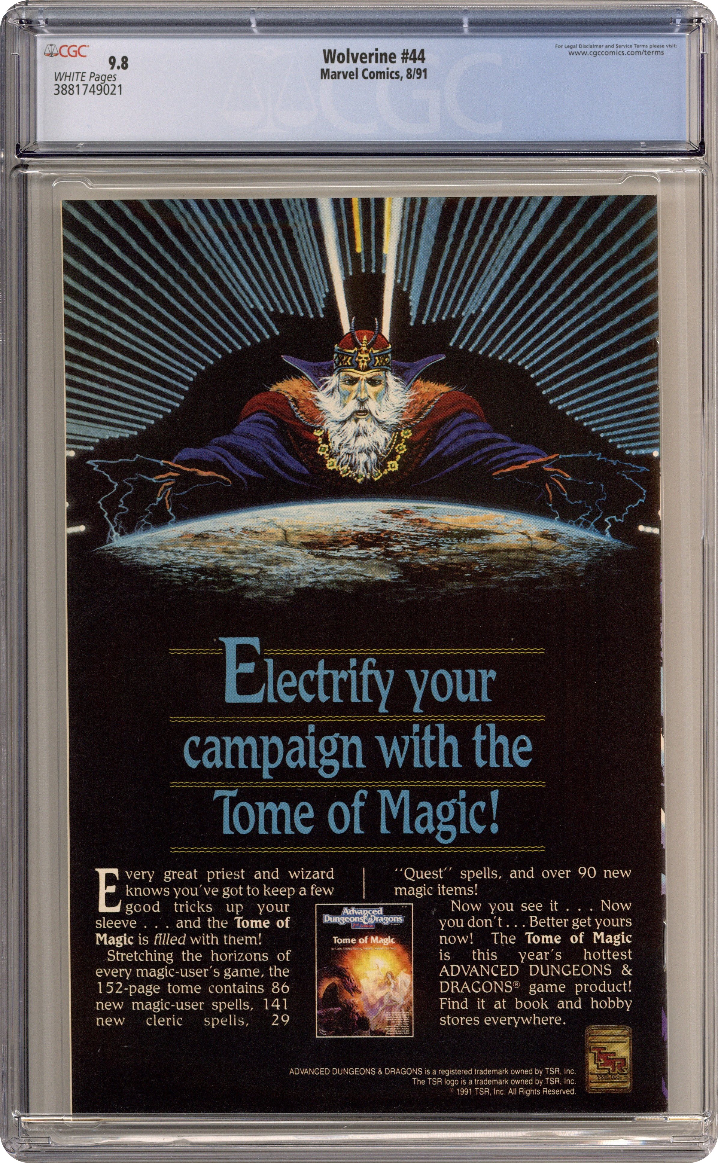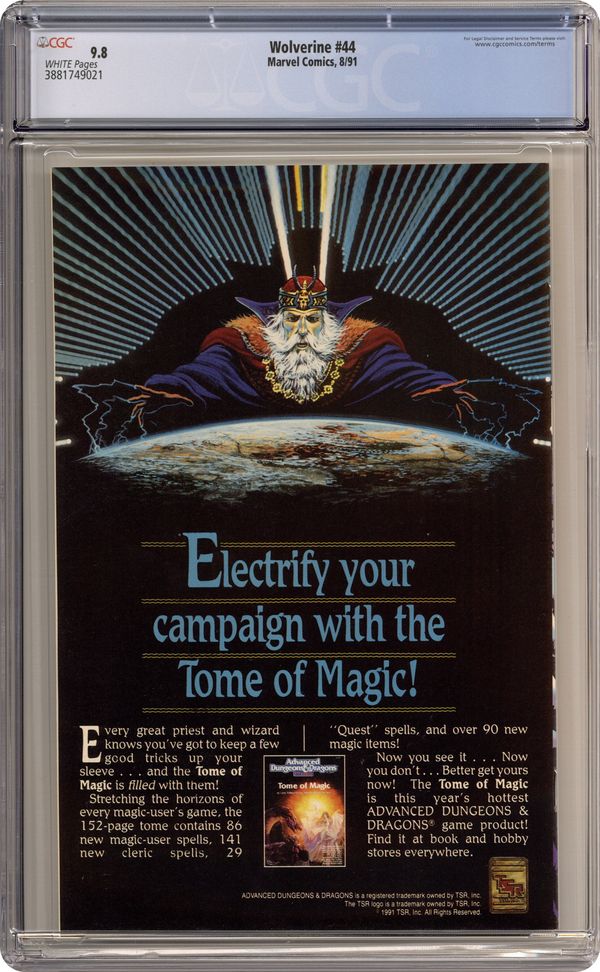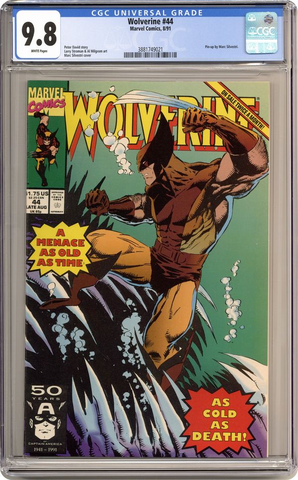 "Babes at Sea!" Written by Peter David. Art by Marc Silvestri (page 1), Larry Stroman and Al Milgrom. Wolverine sets out to stop a macabre force of evil that preys upon the unborn children of expectant mothers. 32 pages, FC Cover price $1.75. Grade: CGC 9.8 explanation of grade Condition: Used (collectible)