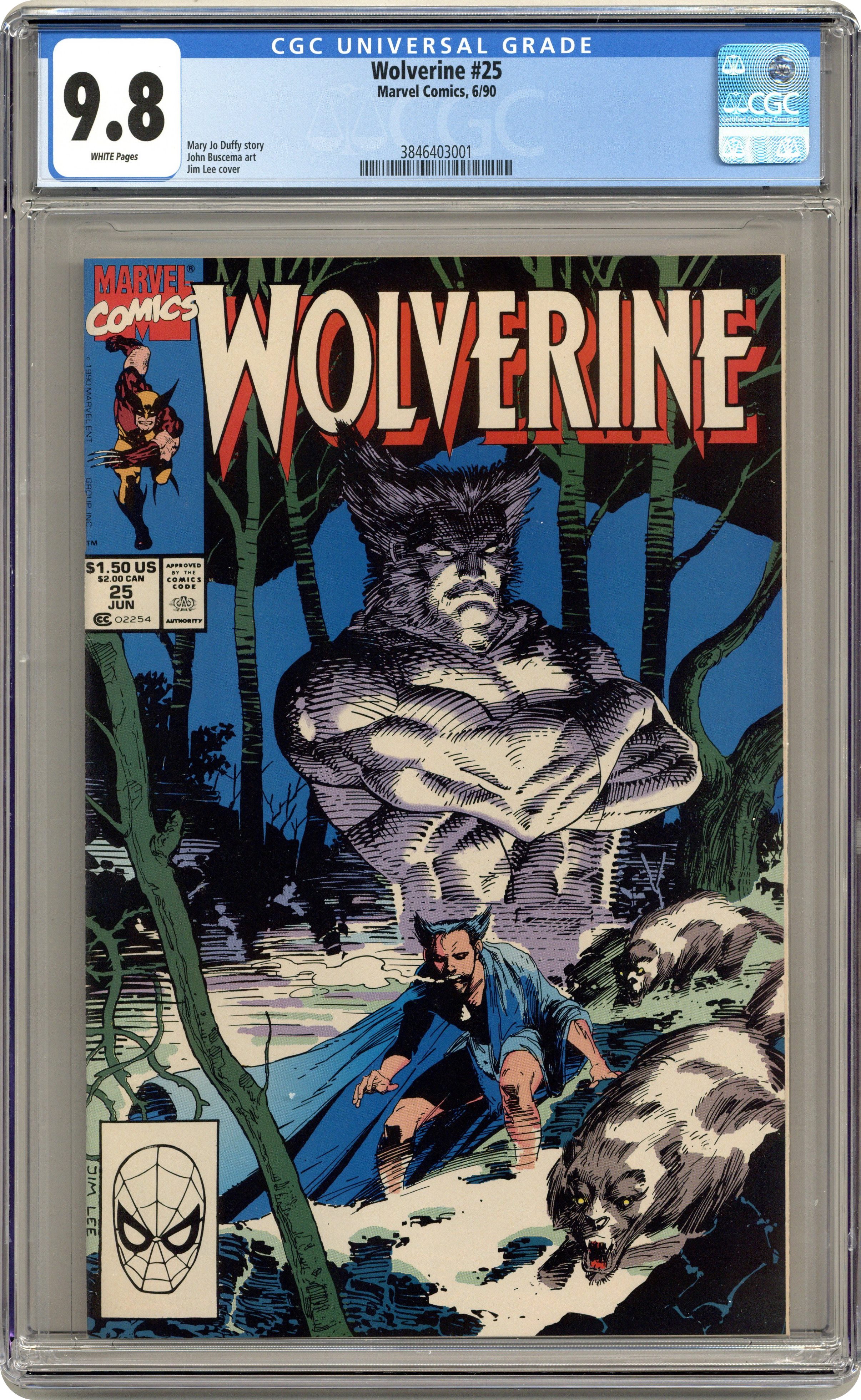 Direct Edition. "Heir Aid!" Written by Jo Duffy. Art by John Buscema. Cover by Jim Lee. Based on the classic story The Jungle Book, Wolverine tells a bedtime story to a crime boss' son. 32 pages, FC Cover price $1.50. Grade: CGC 9.8 explanation of grade Condition: Used (collectible)