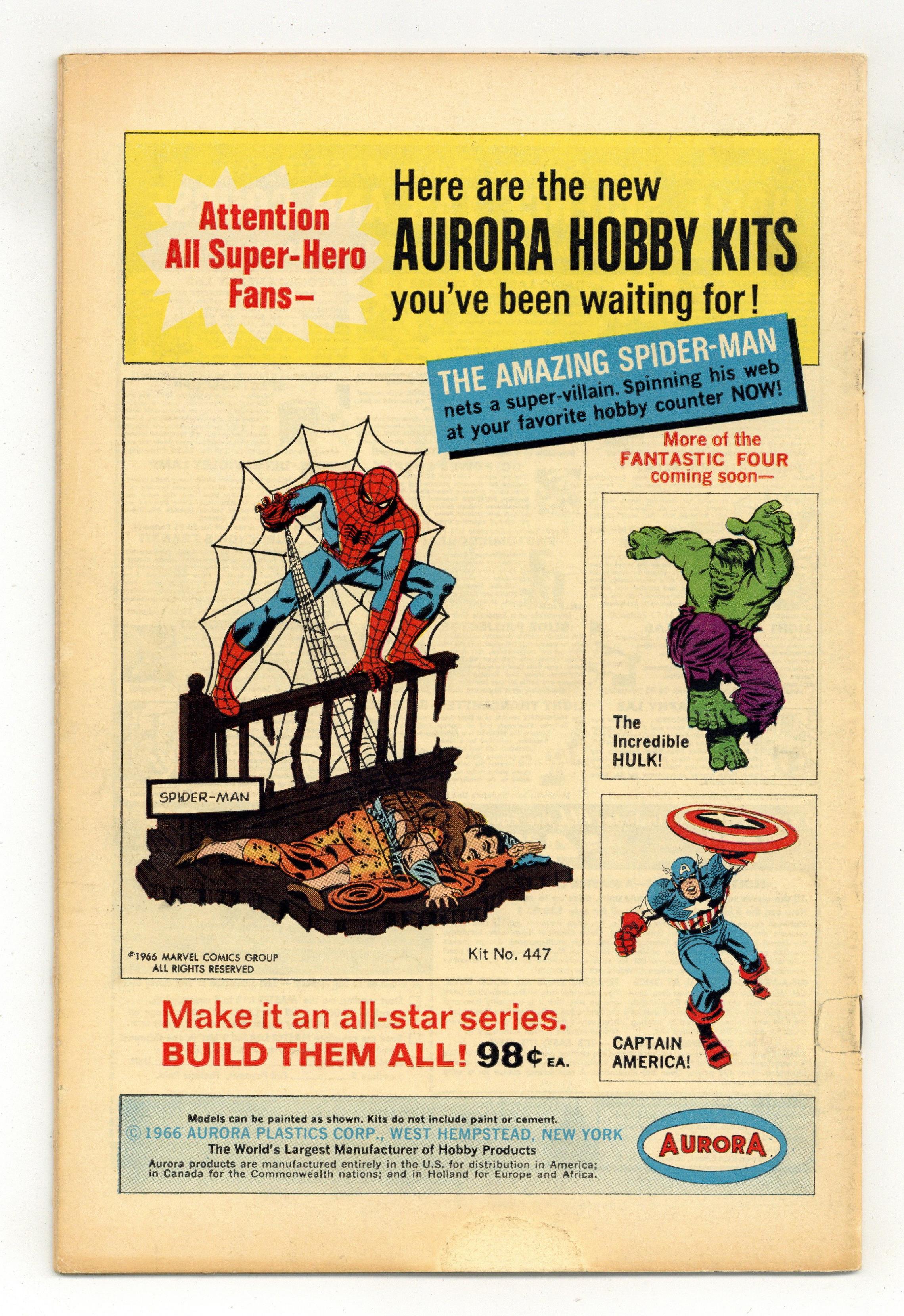 Cover by John Romita Sr. Second appearance of the Lizard in "Where Crawls the Lizard," script by Stan Lee, art by John Romita Sr.; Dr. Connors reacts from The Rhino antidote he was previously working on and turns into The Lizard; Realizing this, he runs away but is spotted by his son Billy; The Lizard plots his human conquest and plans to defeat Spider-Man. Reprinted in Marvel Tales # 184. 36 pgs., full color. $0.12. Cover price $0.12. Grade: GD/VG 3.0 explanation of grade Condition: Used (collectible)