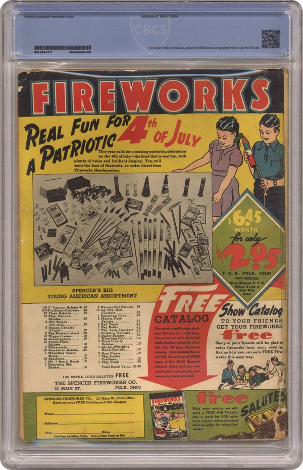Ended May 3 2023 Winning Bid $330 Cover art by Jon L Blummer. Marman's Monsters Have Escaped starring Gary Concord, the Ultra Man, script and art by Jon L Blummer; Garoo takes over Marman's body and leads his monsters to take over the world. Mutt and Jeff strips by Al Smith (as Bud Fisher). Believe It or Not by Robert L. Ripley. Miss Snap starring Hop Harrigan, script and art by Jon L Blummer; Miss Snap becomes Treasurer of the All-American Aviation Company and orders Hop to start a Hop Harrigan Flying Club. Ride'em Scribbly starring Scribbly, script and art by Sheldon Mayer. The Infra Red Destroyers [Part 3]--Adventures in the Unknown, script by Carl H Claudy, art by Stan Aschmeier. Tom Sawyer book review. The Big Test starring Ben Webster, script and art by Edwin Alger. Harbor Sabotage starring Red, White and Blue, script by Jerry Siegel, art by William Smith. 68 pgs. $0.10. Cover price $0.10. Grade: CBCS 1.8 explanation of grade Condition: Used (collectible)