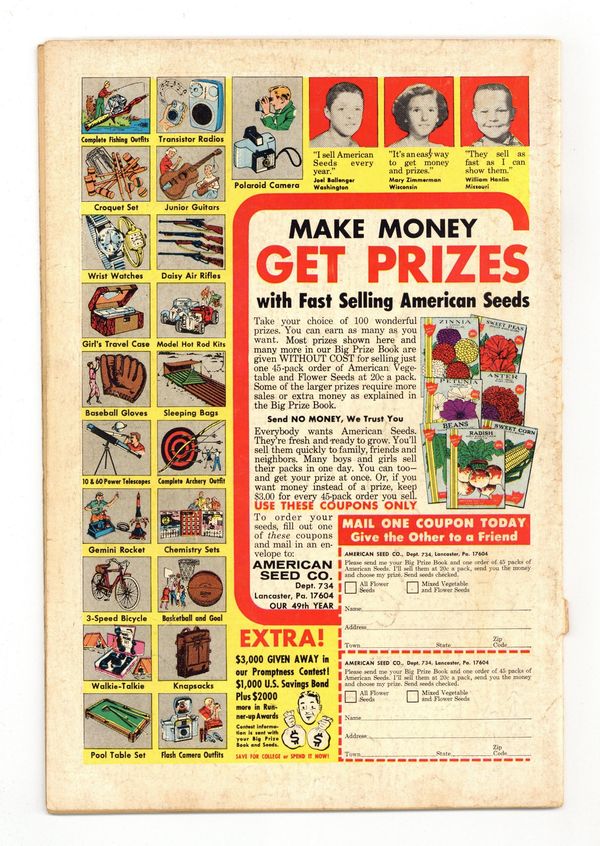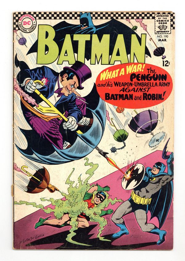 Cover pencils by Carmine Infantino, inks by Joe Giella. "The Penguin Takes a Flyer--Into the Future!", script by Gardner Fox, pencils by Sheldon Moldoff (as Bob Kane), inks by Joe Giella; Penguin attempts to fool the Caped Crusaders into believing that his new tricks are based on futuristic technology. When this fails and his gang is captured the Fowl villain begins using robotic umbrellas against the Dynamic Duo. Letters from letter hack Guy H. Lillian III and Marvel colorist and assistant editor Irene Vartanoff. Cap's Hobby Hints activity half-page by Henry Boltinoff. Countdown on Excellence public service, script by Jack Schiff, art by Sheldon Moldoff; Jerry gets a lecture from his father on the importance of doing every job right. 36 Pages, Full Color. Cover price $0.25. Grade: GD/VG 3.0 explanation of grade Condition: Used (collectible)