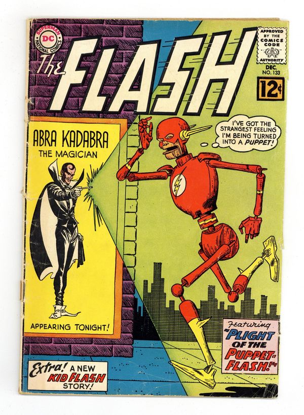 Cover pencils by Carmine Infantino, inks by Murphy Anderson. The Plight of the Puppet Flash!, script by John Broome, pencils by Carmine Infantino, inks by Joe Giella; Abra Kadabra turns Flash into a puppet. Secret of the Handicapped Boys!, script by John Broome, pencils by Carmine Infantino, inks by Joe Giella; Three handicapped boys accidentally discover that Wally West is Kid Flash. Johnny DC ad. Superman talks about Pennies for Unicef! public service ad with Superman. Ads for Giant Superman Annual and Giant Batman Annual. Brave and the Bold #45 ad with Strange Sports Stories. 36 Pages, Full Color. Cover price $0.12. Grade: GD+ 2.5 explanation of grade Condition: Used (collectible)