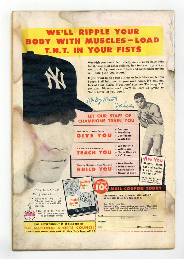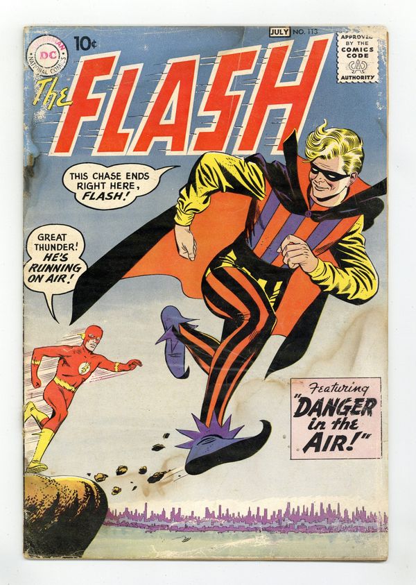Cover pencils by Carmine Infantino, inks by Joe Giella. Origin and 1st appearance of the Trickster in Danger in the Art, pencils by Carmine Infantino, inks by Joe Giella; Flash battles the Trickster, who escapes by running on air. The Man Who Claimed the Earth!, script by John Broome, pencils by Carmine Infantino, inks by Joe Giella; Iris and Dr. Wiley research some strange metal, which is wreckage from a spaceship; Flash battles Po-Siden. Palisades Amusement Park ad with Superman. National Sports council book ad with Mickey Mantle and Joe Louis. 36 Pages, Full Color. Cover price $0.10. Grade: FR 1.0 explanation of grade Condition: Used (collectible)