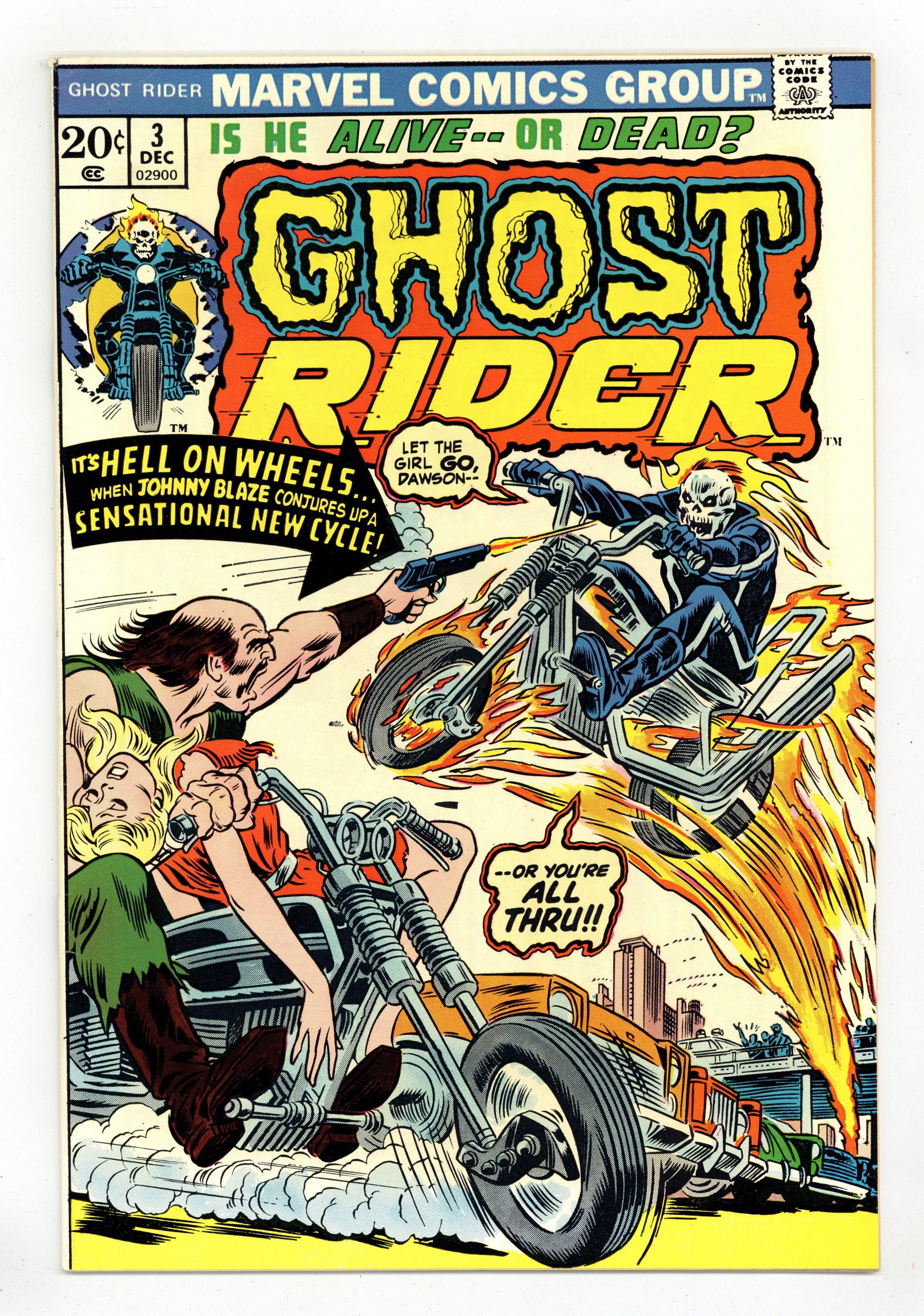 "Wheels on Fire!" Guest-starring Daimon Hellstrom (Son of Satan). Story by Gary Friedrich. Art by Jim Mooney and John Tartaglione. Cover by John Romita, Sr. It had to happen, the fateful final showdown with Big Daddy Dawson! Plus, in this issue, Ghost Rider learns how to summon forth his mystical motorcycle! 32 pages, FC. Cover price $0.20. Grade: FN+ 6.5 explanation of grade Condition: Used (collectible)