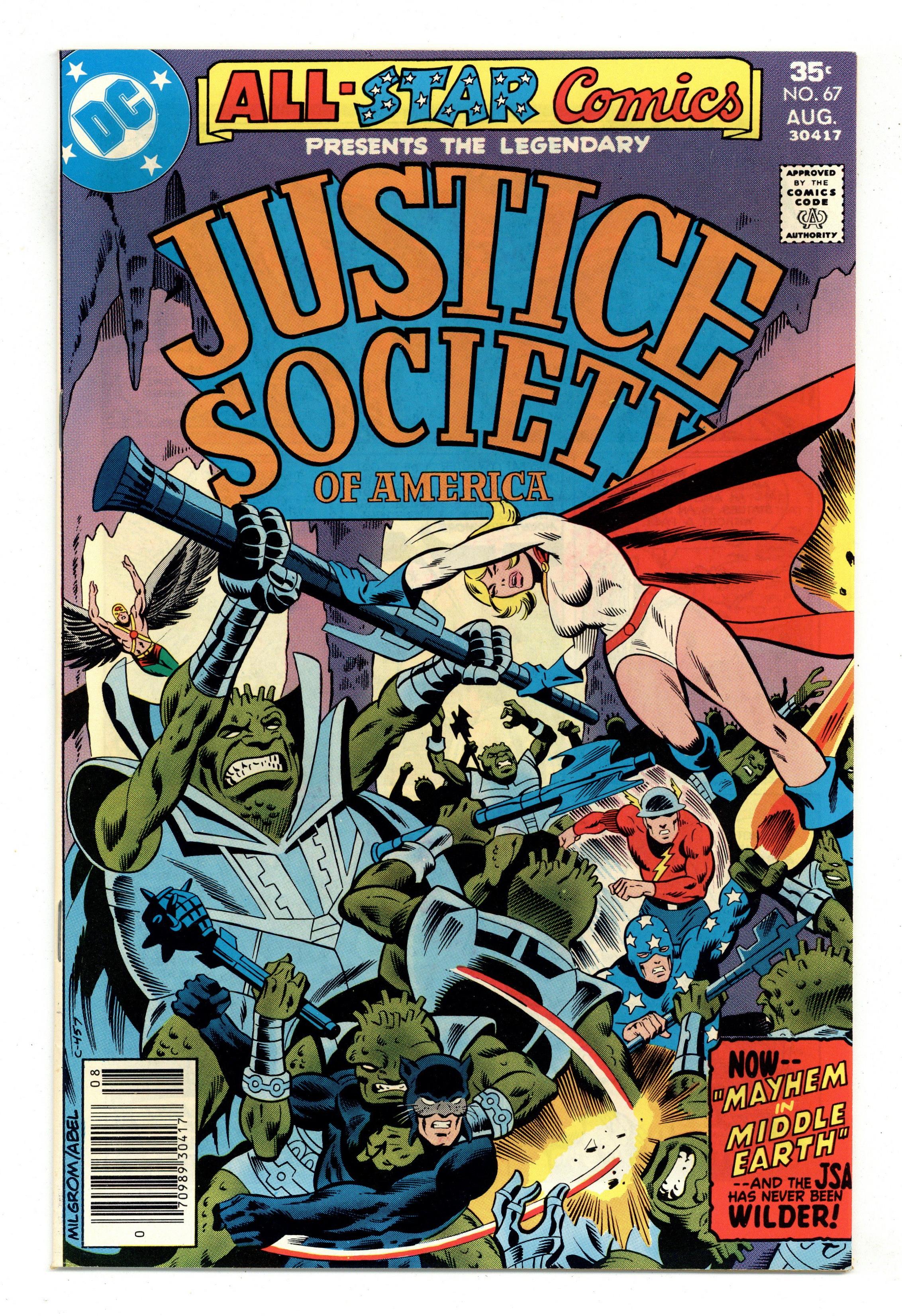 First 35-cent cover price issue. Cover pencils by Al Milgrom, inks by Jack Abel. Birds of a Feather Hostess ad starring Batman & Robin, pencils by Curt Swan, inks by Vince Colletta. The Attack of the Underlord! starring the Justice Society of America, script by Paul Levitz, pencils by Joe Staton, inks by Bob Layton; Gotham City Police Commissioner Bruce Wayne begins to turn against the JSA as he paroles the Psycho Pirate from prison; Meanwhile, the JSA faces off vs. the Underlord and his minions, who want to take over Earth-2's surface world, unaware of Wayne's actions aboveground. Paul Levitz bio by Mike Gold. 36 Pages, Full Color. Cover price $0.35. Grade: VF 8.0 explanation of grade Condition: Used (collectible)