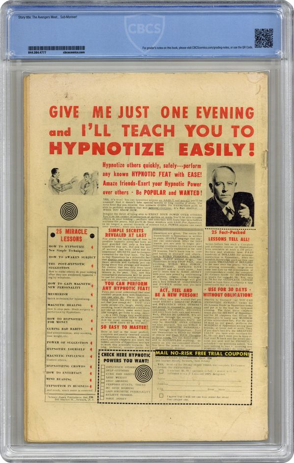Ended Apr 11 2023 Winning Bid $220 Cover pencils by Jack Kirby, inks by Paul Reinman. The Avengers Meet... Sub-Mariner!, script by Stan Lee, pencils by Jack Kirby, inks by Paul Reinman; After he left them, the Avengers feel responsible for the damages that the Hulk may cause; They start a search for him and find him. When they start to battle, the Sub-Mariner joins the Hulk. Roster includes: Thor, Giant-Man, Wasp, and Iron Man. Guest appearances by the Hulk, Rick Jones, the Sub-Mariner, the Fantastic Four, Spider-Man, the original X-Men, Odin, and miscellaneous Asgardians. 36 pgs. $0.12. Cover price $0.12. Grade: CBCS 3.0 explanation of grade Condition: Used (collectible)