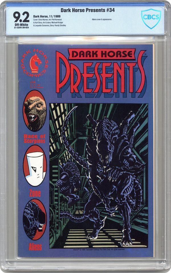 Ended Jun 19 2024 Winning Bid $17 Cover by Chris Warner. This issue of Dark Horse's premier title features the fantastic climax of Book Two of Leopoldo Duranona's Race of Scorpions, the final episode of the current adventures of Michael Kraiger's radioactive misfit, The Zone, and a special Aliens story by Chris Warner and Randy Stradley that will kick off one of Dark Horse's most exciting projects! 32 pages, B&W. Cover price $1.75. Grade: CBCS 9.2 explanation of grade Condition: Used (collectible)