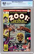 Written by Jack Kirby. Art by Jack Kirby and Mike Royer. Cover by Jack Kirby and John Verpoorten. The issue starts in the distant past where the monolith instructs a hunter on how to craft a spear and then shifts to the future where two astronauts discover an alien ruin. One of the astronauts is killed by a creature, but the other, Woodrow Decker, is transported into a pastoral countryside by the monolith. Here he rapidly ages until he dies and is converted by the monolith into an embryo-type creature referred to as a 'new seed' to explore the galaxy. Based on concepts from the film by Stanley Kubrick & Arthur C. Clarke. Comics ad for the Juicemobiles shoes from Spot-bilt, featuring O.J. Simpson, art by John Romita. Hostess Twinkies ad with Spider-Man, art by Ross Andru and Mike Esposito. Cover price $0.30. Grade: CBCS 8.0 explanation of grade Condition: Used (collectible)