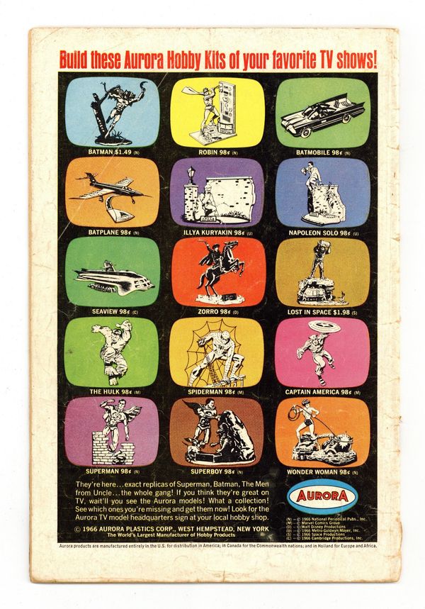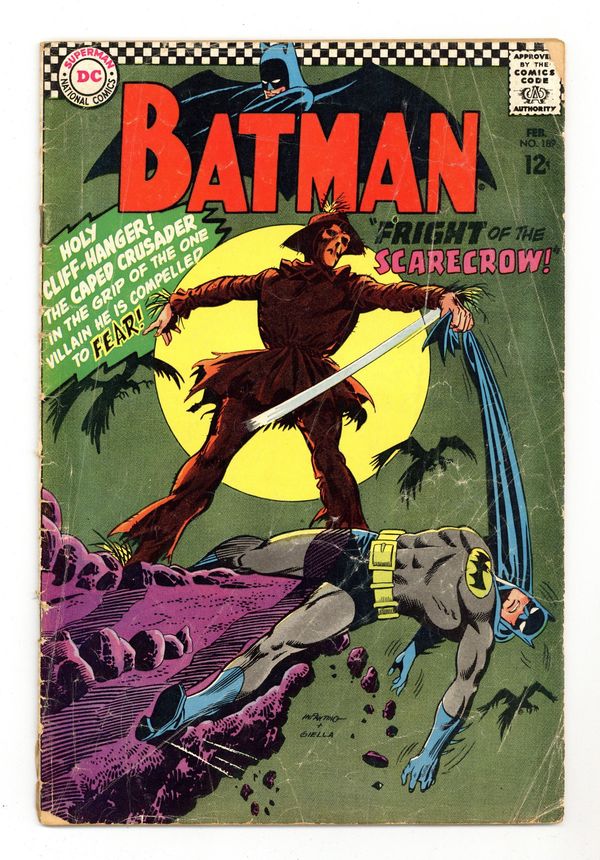 Cover pencils by Carmine Infantino, inks by Joe Giella. 1st Silver Age appearance of Scarecrow in book-length story, "Fright of the Scarecrow!", script by Gardner Fox, pencils by Sheldon Moldoff (as Bob Kane), inks by Joe Giella; While entertaining some children in the park, Dick happens to notice the Scarecrow retrieving buried loot from a past robbery; He calls in Batman and together they battle their old foe until they are blinded by Scarecrow's fear gas. Little Pete humor half-page by Henry Boltinoff. Letter from comic book writer Mark Evanier. Peace on Earth public service announcement. Eyes Front! humor half-page by Henry Boltinoff. 36 Pages, Full Color. Cover price $0.12. Grade: GD 2.0 explanation of grade Condition: Used (collectible)