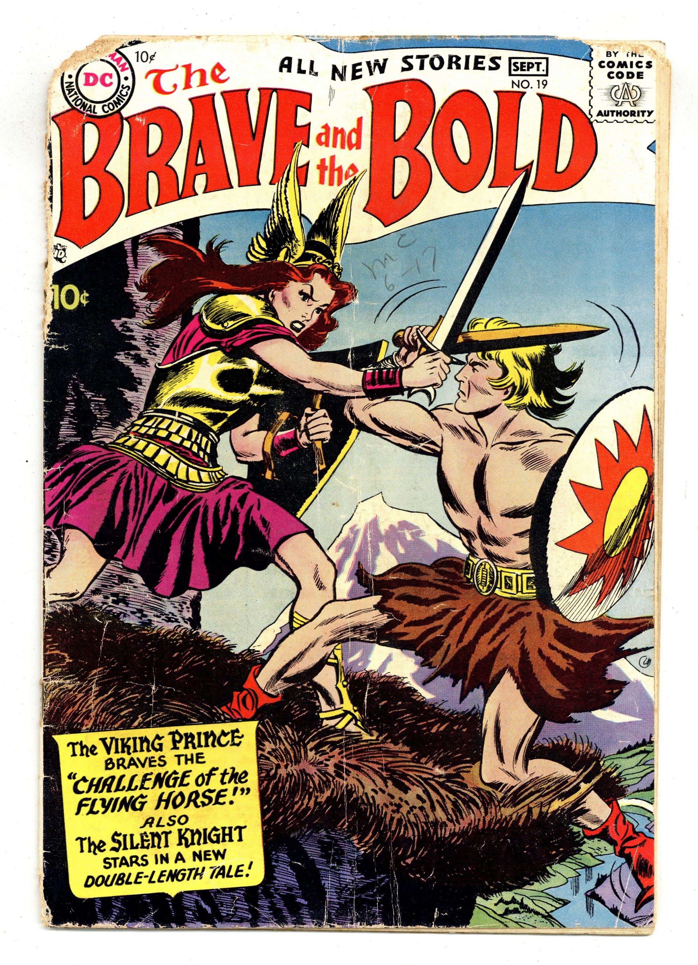 Cover by Irv Novick. "The Challenge of the Flying Horse," script by Bob Haney, art by Joe Kubert; To complete his latest task, Jon climbs a mountain where a great sea eagle has its perch, his goal to collect a single feather from its wing; A dark figure swoops out of the clouds and attacks him, not an eagle, but a winged horse; It carries Jon to Valhalla, a land in the clouds ruled by warrior women. The Last Days of the Knights article by Jack Miller, art by Raymond Perry; How gunpowder contributed to the end of the Age of Chivalry. Tournament of Knights non-fiction story by Julius Schwartz, pencils by Morris Waldinger, inks by Tommy Nicolosi; A summary of tournament rules followed by knights. "End of the Silent Knight," script by Robert Kanigher, art by Irv Novick; Alvin, a kitchen-boy of Camelot, dreams of joining the noble Knights of the Round Table; He is finally granted an opportunity when he is given a task to prove himself: capture the Silent Knight! Beasts of the Shield article by Julius Schwartz, pencils by Morris Waldinger, inks by Tommy Nicolosi; How and why animals were represented on shields. 36 Pages, Full Color. Cover price $0.10. Grade: FR/GD 1.5 explanation of grade Condition: Used (collectible)