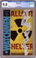"The judge of all the Earth". Part 3 of 12. Story by Alan Moore. Art and cover by Dave Gibbons. How do you defeat an invincible foe who can see all of time at once? The mysterious villain does it to Dr. Manhattan by taking away everything he has ever cared about, causing him to abandon the Earth. Includes four page fictional text feature presenting chapters 5 and 6 of Hollis Masons book, "Under the Hood". 32 pages. Full color. No ads. Cover price $1.50. Grade: CGC 9.8 explanation of grade Condition: Used (collectible)