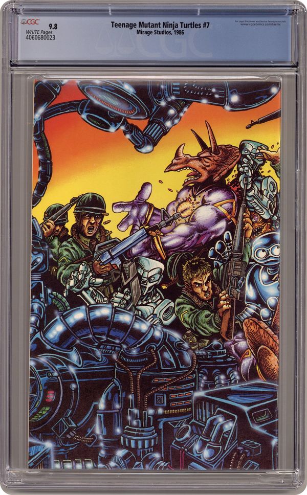 Corben color story. The original series that introduced the Turtles to the world. Returning to Earth, the Turtles learn the role the Utroms played in their origin. Story, art and cover by Kevin Eastman & Peter Laird. Black and white; 32 pages. Cover price $1.75. Grade: CGC 9.8 explanation of grade Condition: Used (collectible)