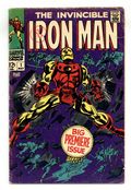 Cover pencils by Gene Colan, inks by Mike Esposito. "Alone Against AIM," script by Archie Goodwin, pencils by Gene Colan, inks by Johnny Craig; Iron Man is captured by A.I.M using a suction beam and trapped in a submarine by orders of Mordius; Meanwhile A.I.M. soldiers are gloating about how they have sunk The Maggias gambling ship and destroyed their leadership; The Golden Avenger is knocked out by gas while back on the sinking Maggia ship Jasper Sitwell is evacuating the passengers; Sitwell stumbles upon Whitney Frost whom he recognises from Stark Industries as one of Tonys admirers; Sitwell rescues Frost and they are taken aboard a S.H.I.E.L.D. helicopter where Nick Fury awaits; When alone Frost reveals herself to be The Big M, leader of The Maggia, and her plan to use Sitwell to learn the secrets of Stark Industries. Continued between Iron Man and Sub-Mariner #1 and Avengers #51. "The Origin of Iron Man," script by Archie Goodwin, pencils by Gene Colan, inks by Johnny Craig; An abridged retelling of Iron Man's origin from Tales of Suspense #39. 36 pgs., full color. $0.12. Cover price $0.12. Grade: GD/VG 3.0 explanation of grade Condition: Used (collectible)