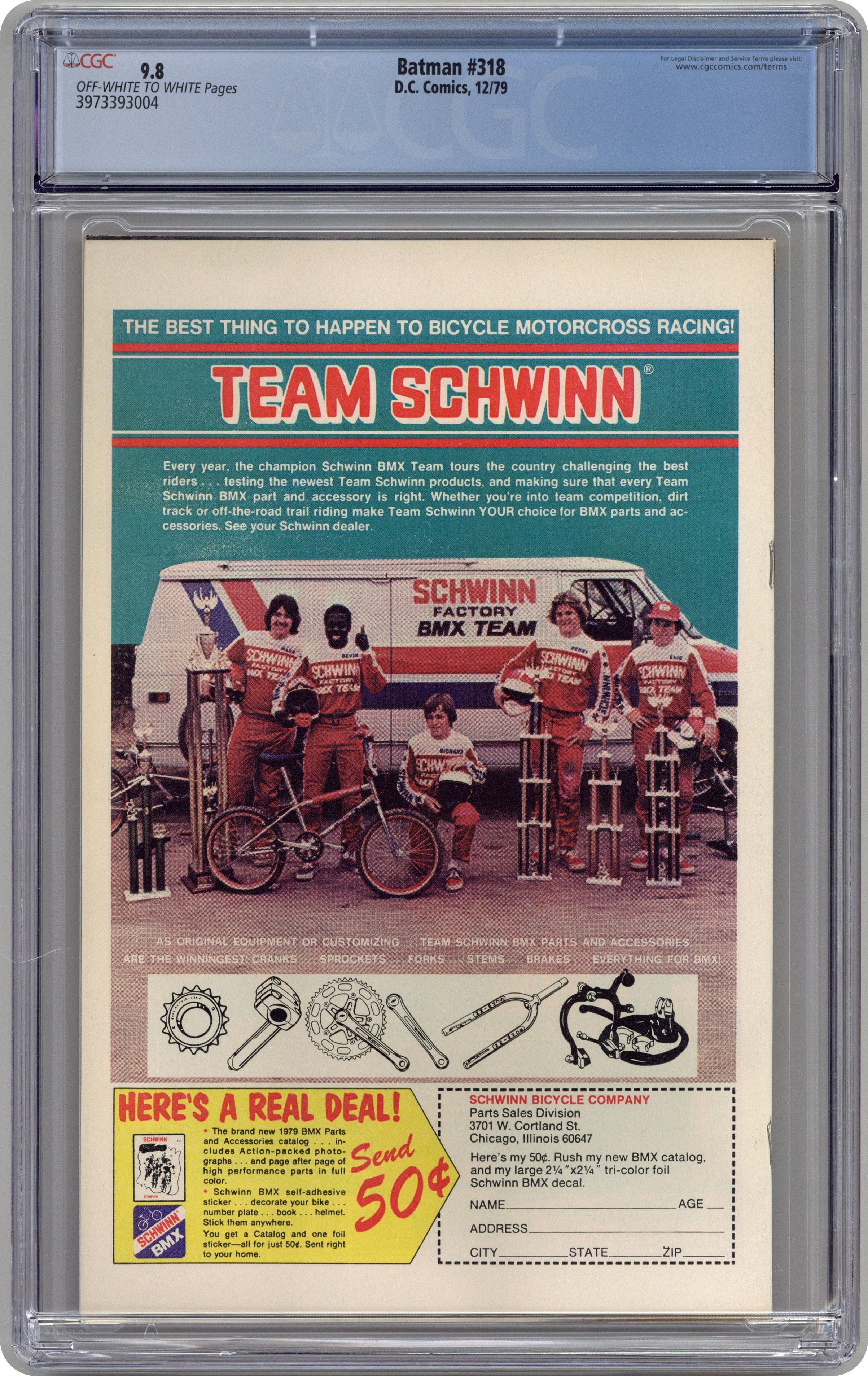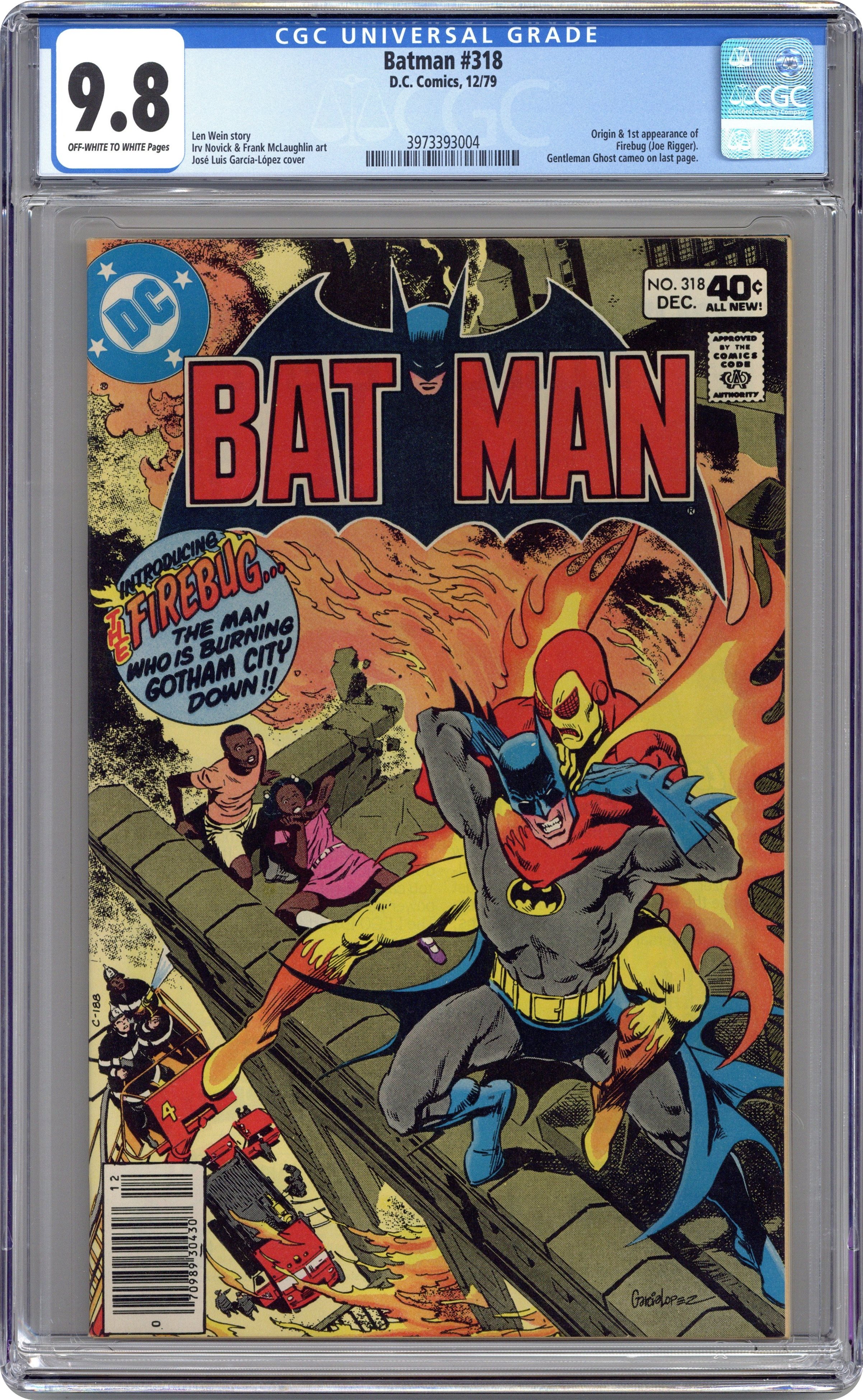 Cover art by Jose Luis Garcia-Lopez. "My City Burns at Both Ends--It Will Not Last the Night!", script by Len Wein, pencils by Irv Novick, inks by Frank McLaughlin; Batman rescues a girl from a burning building; He faces Firebug, who shoots napalm from his fingertips at Batman; Bruce Wayne dances with Selina Kyle, who gets a strange headache. Hostess snack cakes ad with Superman. Answer Man DC questions and answers by Bob Rozakis. Green Arrow & Human Target parody strip by Fred Hembeck. 36 Pages, Full Color. Cover price $0.40. Grade: CGC 9.8 explanation of grade Condition: Used (collectible)