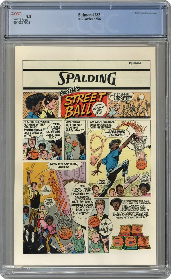 Cover art by Ernie Chan (as Ernie Chua) and Vince Colletta. Hostess Fruit Pies ad starring The Joker, pencils by Curt Swan, inks by Vince Colletta. Four Doorways to Danger!, script by David Vern (as David V. Reed), pencils by Ernie Chan (as Ernie Chua), inks by Tex Blaisdell; Batman battles the Special Police Unit, impersonates their major, and heads off for Burundi. Justice for all Includes Children, 8 public service announcement starring Superman, art by Curt Swan. 36 Pages, Full Color. Cover price $0.30. Grade: CGC 9.8 explanation of grade Condition: Used (collectible)