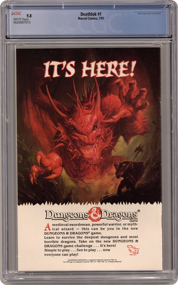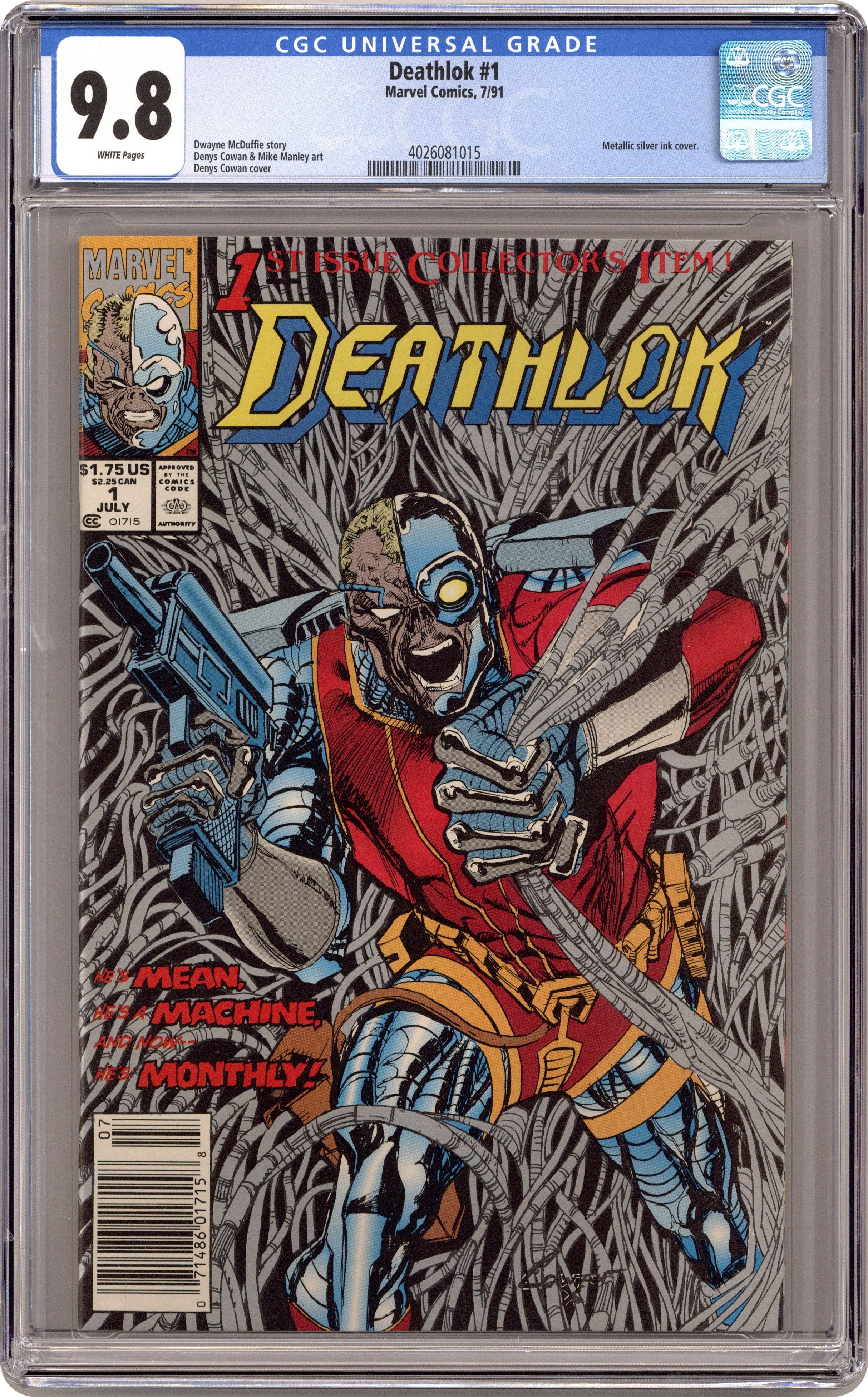 Direct Edition. Cover art by Denys Cowan. The Wolf Is At The Door, script by Dwayne McDuffie and Gregory Wright, pencils by Denys Cowan, inks by Mike Manley; Deathlok stops Harlan Ryker's warwolf from killing others who would testify against Ryker. 36 pgs. $1.75. Cover price $1.75. Grade: CGC 9.8 explanation of grade Condition: Used (collectible)