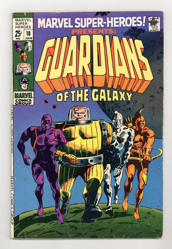 Ended Oct 13 2023 Winning Bid $145 Giant-size issue. Origin and 1st appearance of the Guardians of the Galaxy. Script by Arnold Drake, pencils by Gene Colan, inks by Mike Esposito (as Mickey Demeo). The remainder of the issue contains Golden Age reprints: the Sub-Mariner ("Courage"); and the All Winners Squad featuring Miss America, the Human Torch, and Captain America (from All Winners 21). Letter to the editor from comics writer Steven Grant. Colan cover pencils. Cover price $0.25. Grade: VG+ 4.5 explanation of grade Condition: Used (collectible)